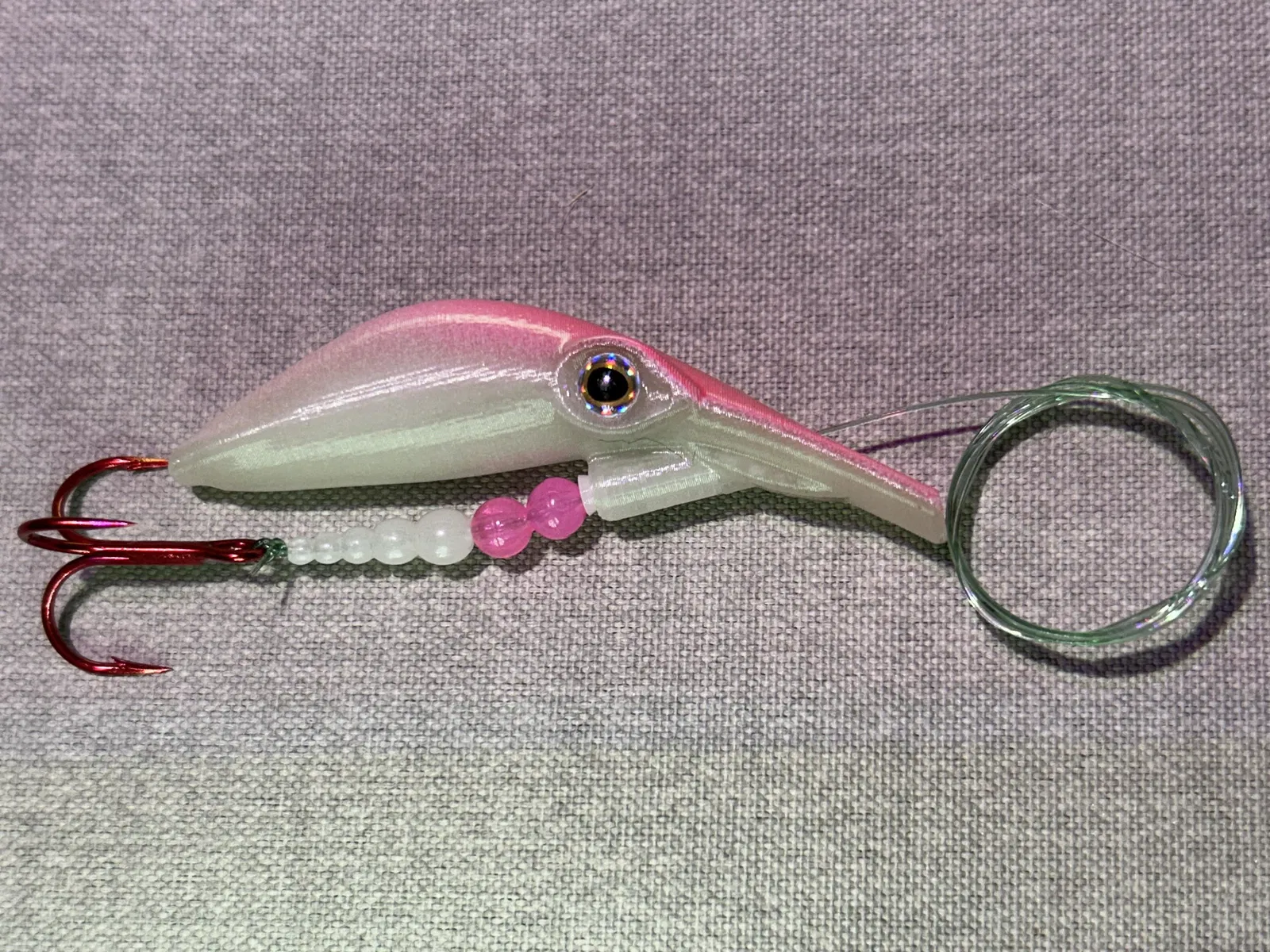 Wicked Squid là mồi câu dạng one-piece có support tích hợp để dễ in, in dọc giúp giảm layer line. Bản chỉnh từ Ugly Smelt, tối ưu action và khoảng hở cho lưỡi; có tùy chọn chi tiết TPU giảm mòn dây và canh hook.