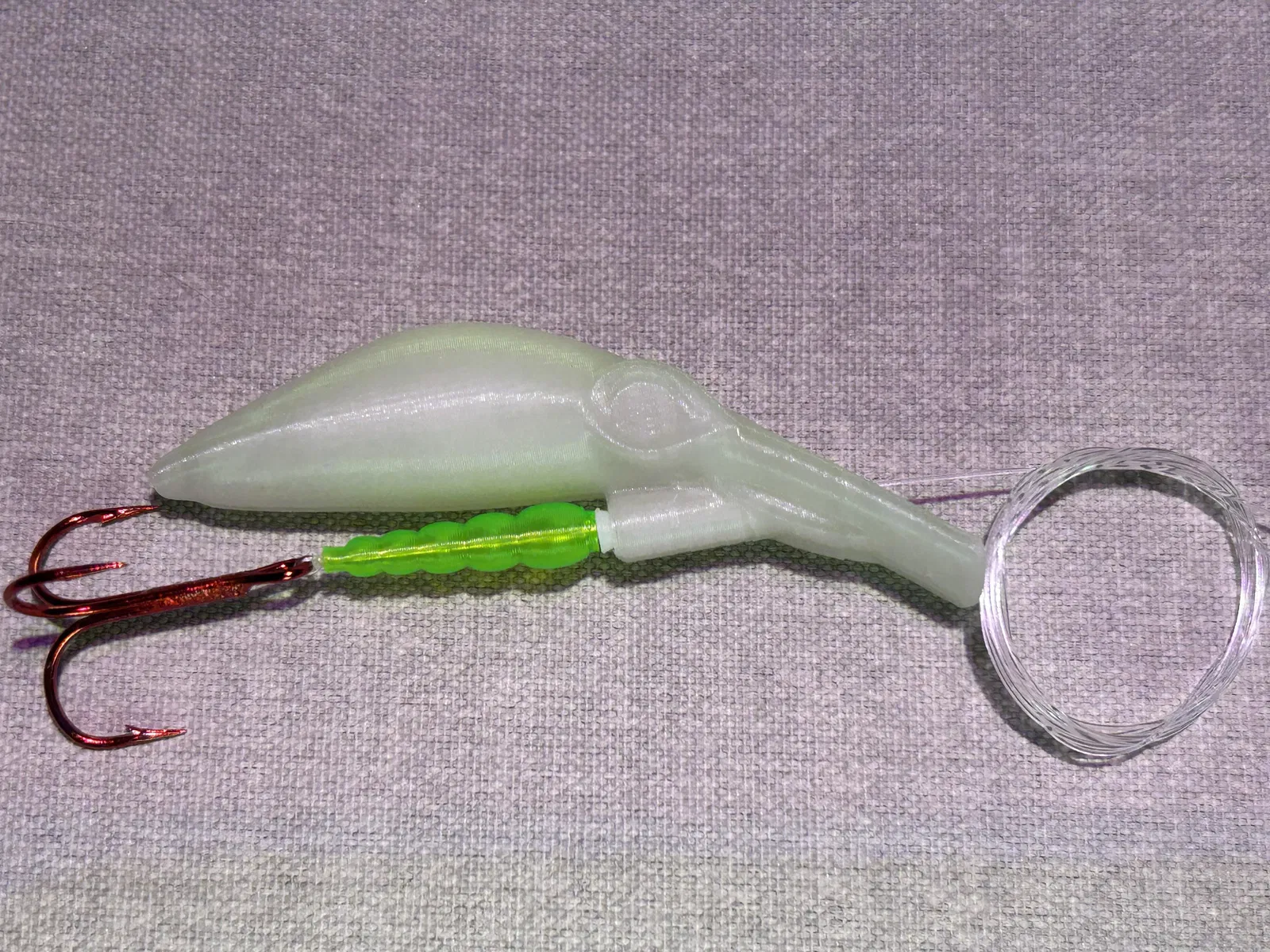 Đây là mồi câu (lure) nguyên khối (one-piece), có thiết kế support sẵn để dễ in. Mẫu được in theo phương thẳng đứng, giúp giảm vệt layer line.