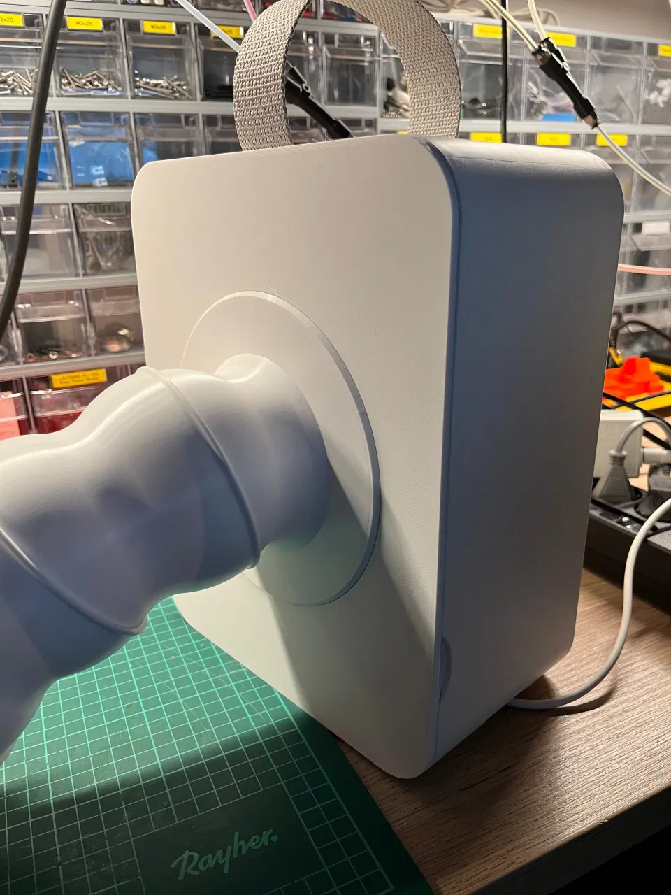 Bộ hút khói cho trạm hàn dùng máy lọc không khí IKEA UPPÅTVIND, kết hợp ống Flexible segmented hose 100mm và một chi tiết nối in 3D. Dễ in, không cần support; có thể thêm aktivkohlefilter 130x130x10 mm.