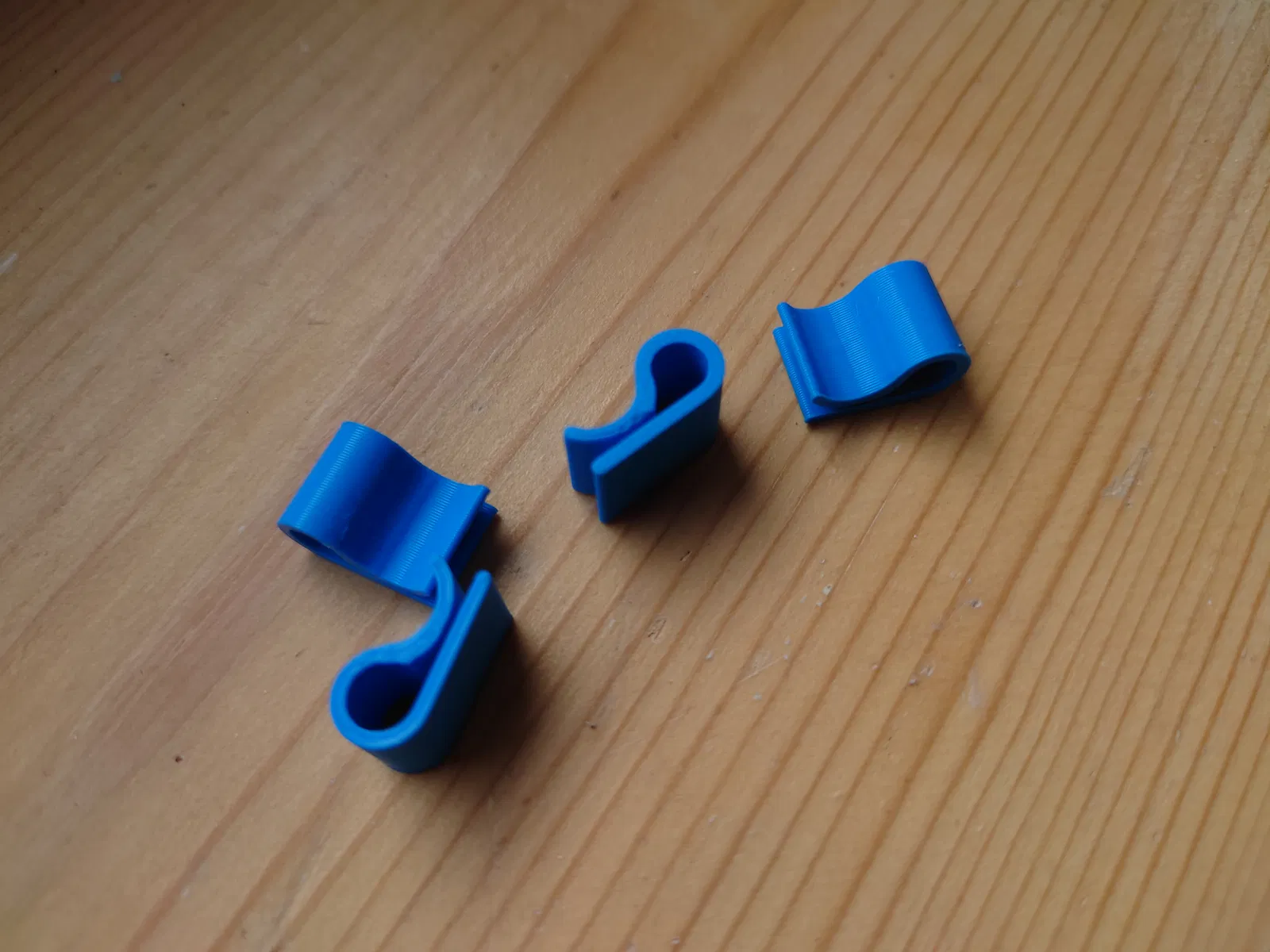 Mẫu kẹp dây cáp đơn giản giúp cố định dây lên bề mặt cứng như mặt bàn. Chỉ cần băng keo hai mặt loại chắc để dán. Dễ gắn/tháo dây, thời gian in nhanh khoảng 2 phút cho mỗi kẹp.