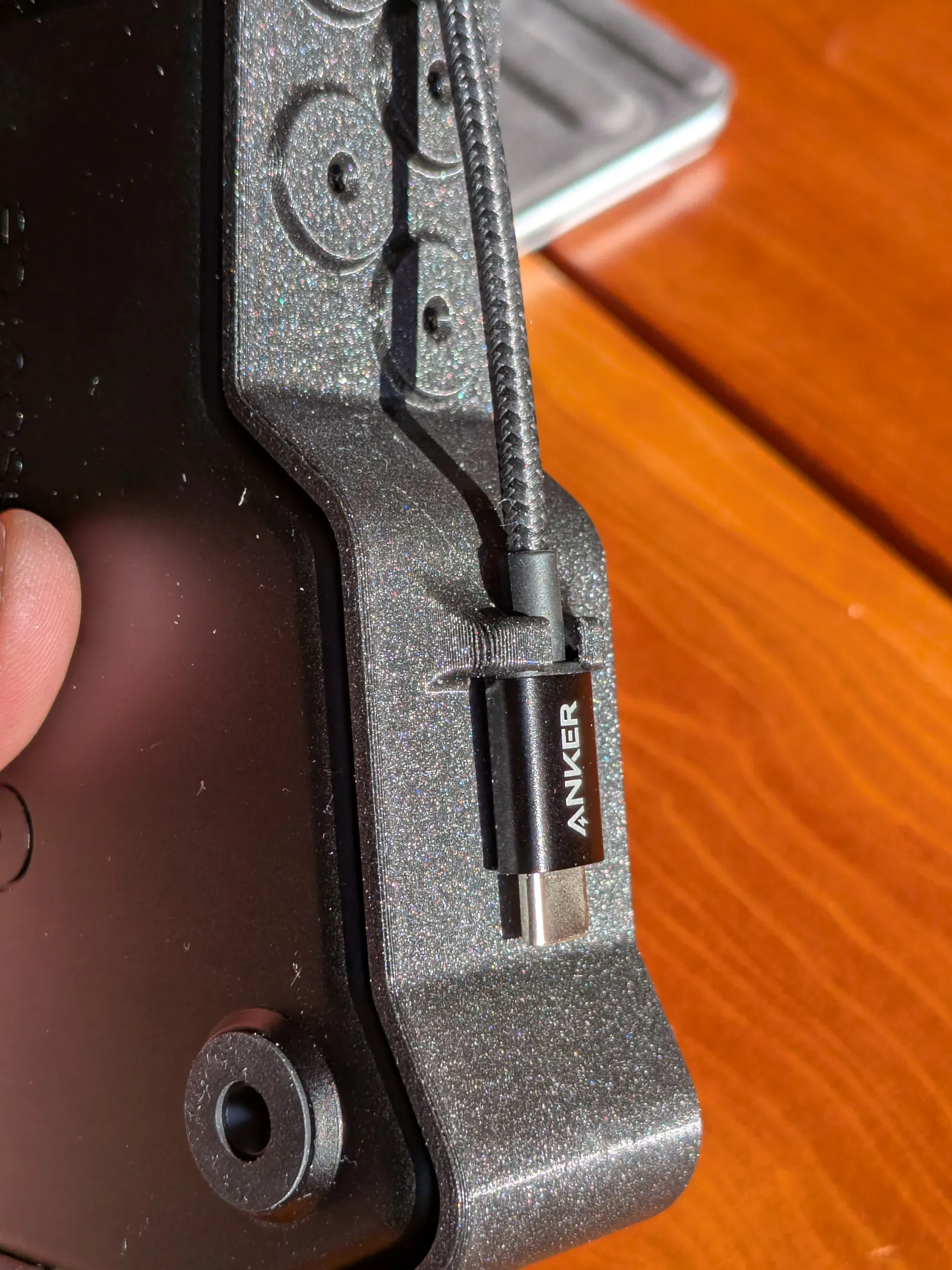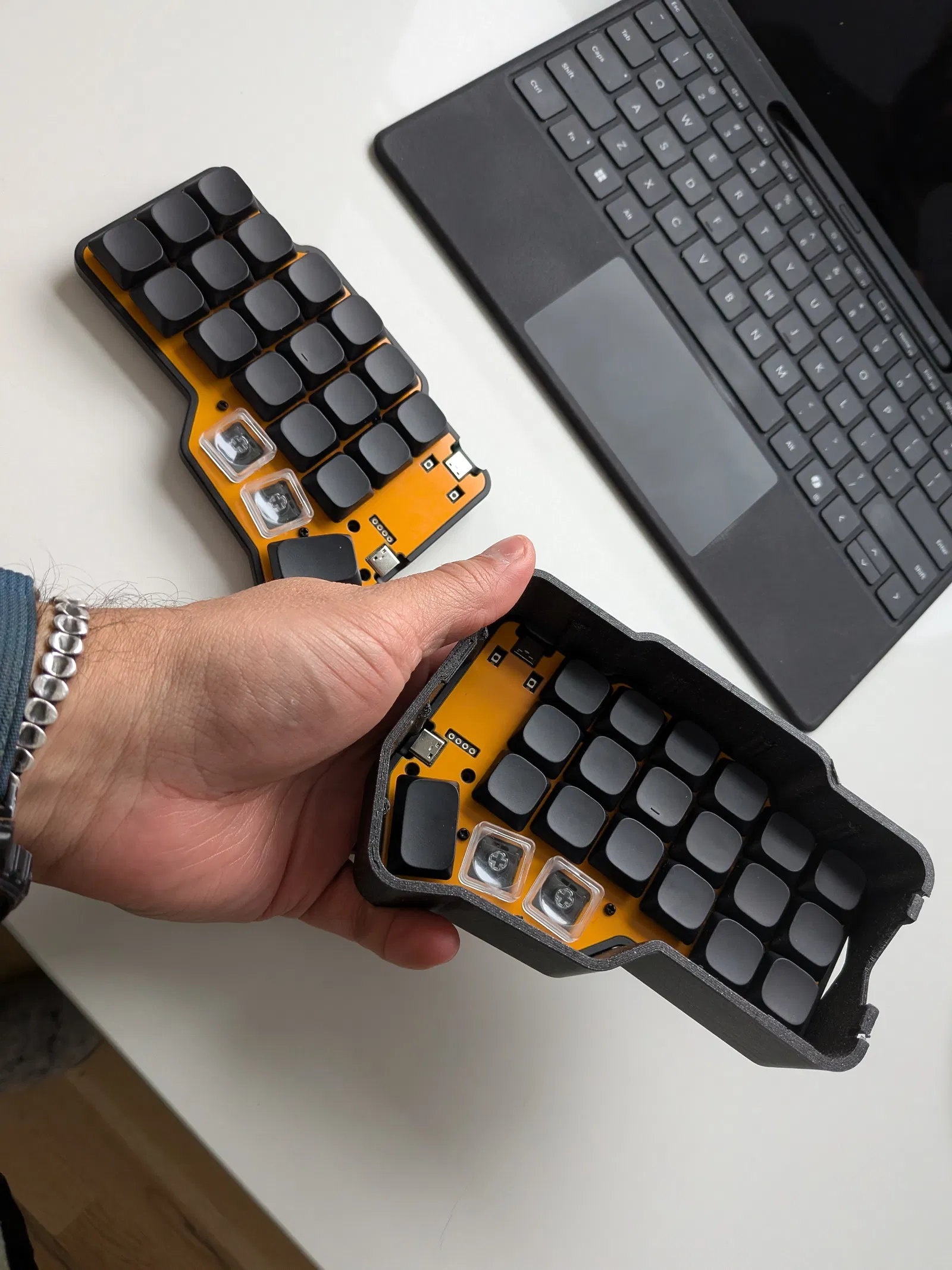 Bản thứ ba có thêm chi tiết kẹp/giữ cho một sợi cáp USB-C to USB-C nhỏ để nối hai nửa bàn phím. Phần này được thiết kế theo sợi cáp Anker dài 12 inch có bán trên Amazon.