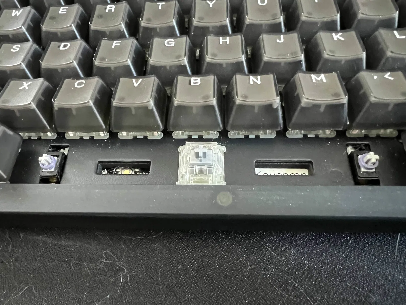 Mình gặp vấn đề phím spacebar bị nghiêng qua lại một bên do stabilizer không cùng độ cao với key switch.