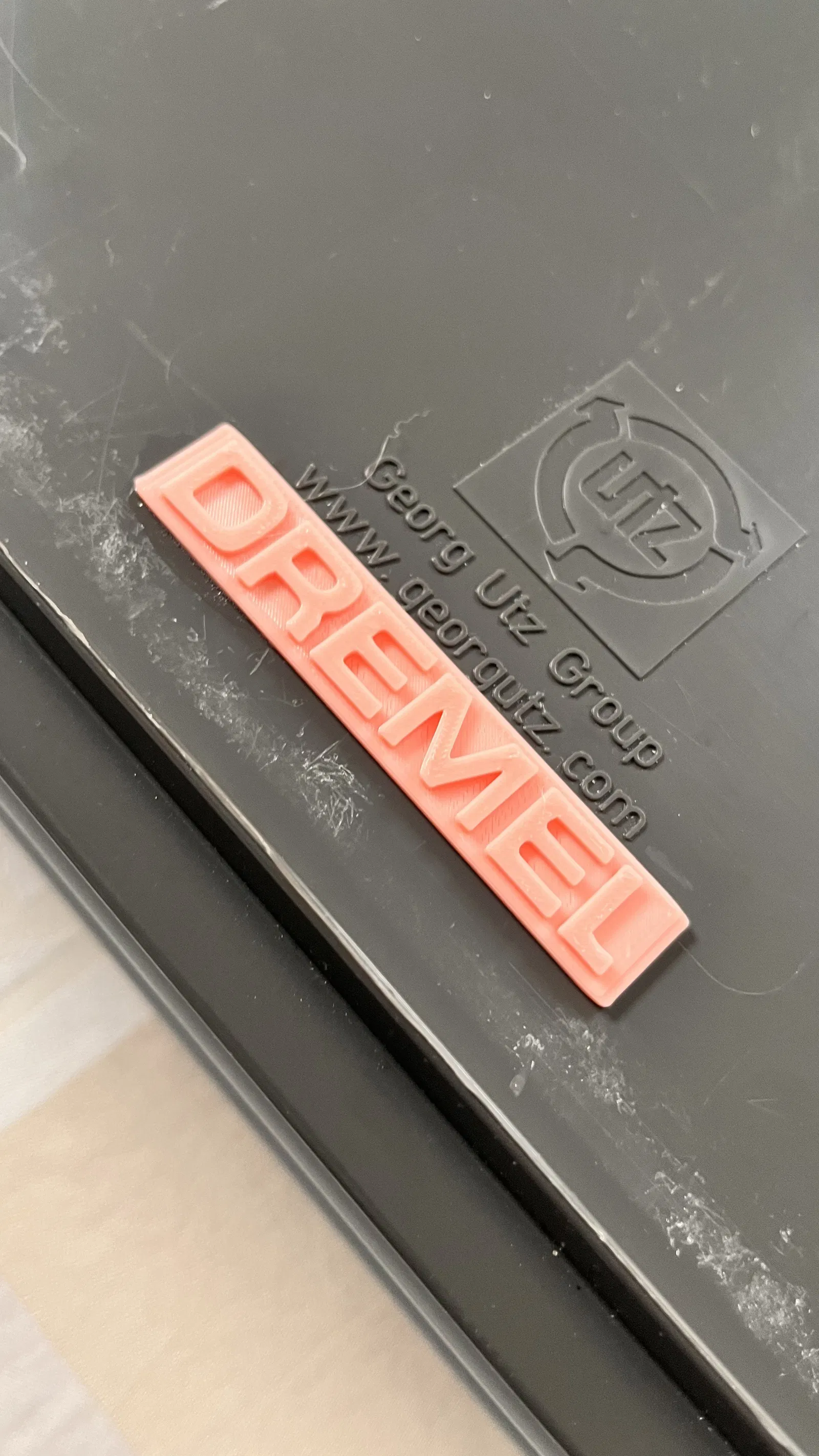 Mẫu bảng logo Dremel dùng để đánh dấu hộp nơi cất dụng cụ Dremel. Có thể in 3D rồi dán lên hộp lưu trữ để nhìn là nhận ra ngay, giúp sắp xếp gọn gàng và dễ tìm đồ hơn.