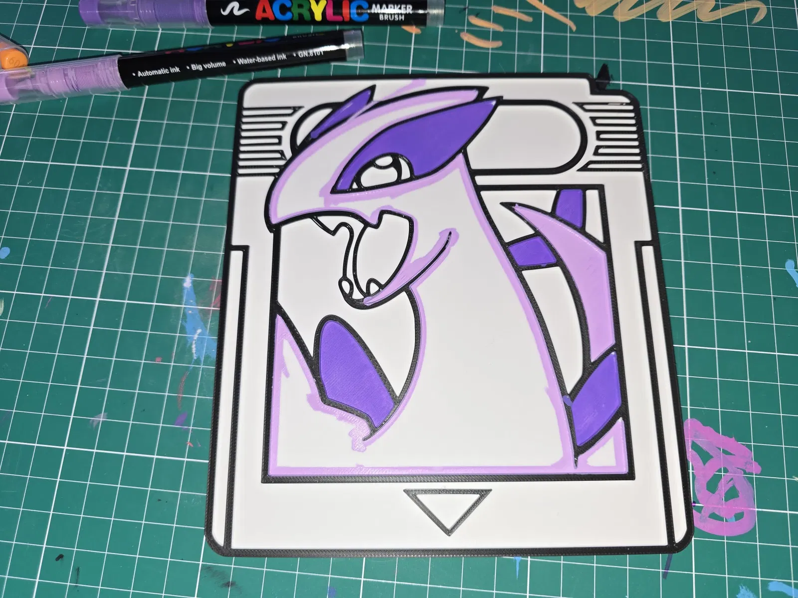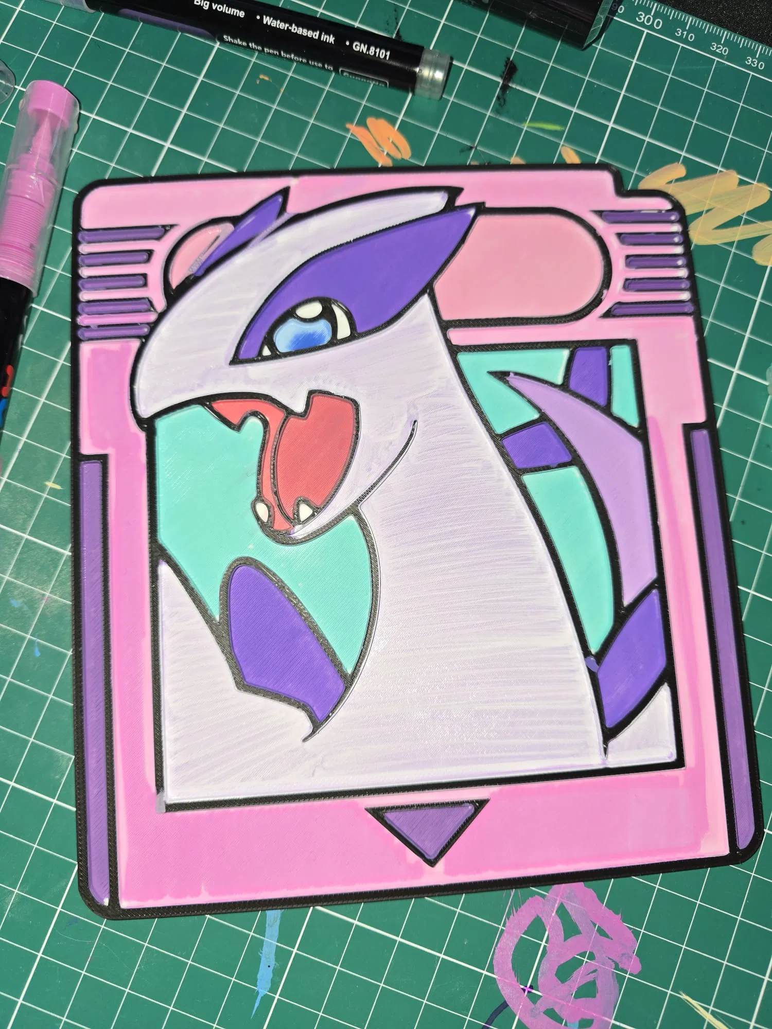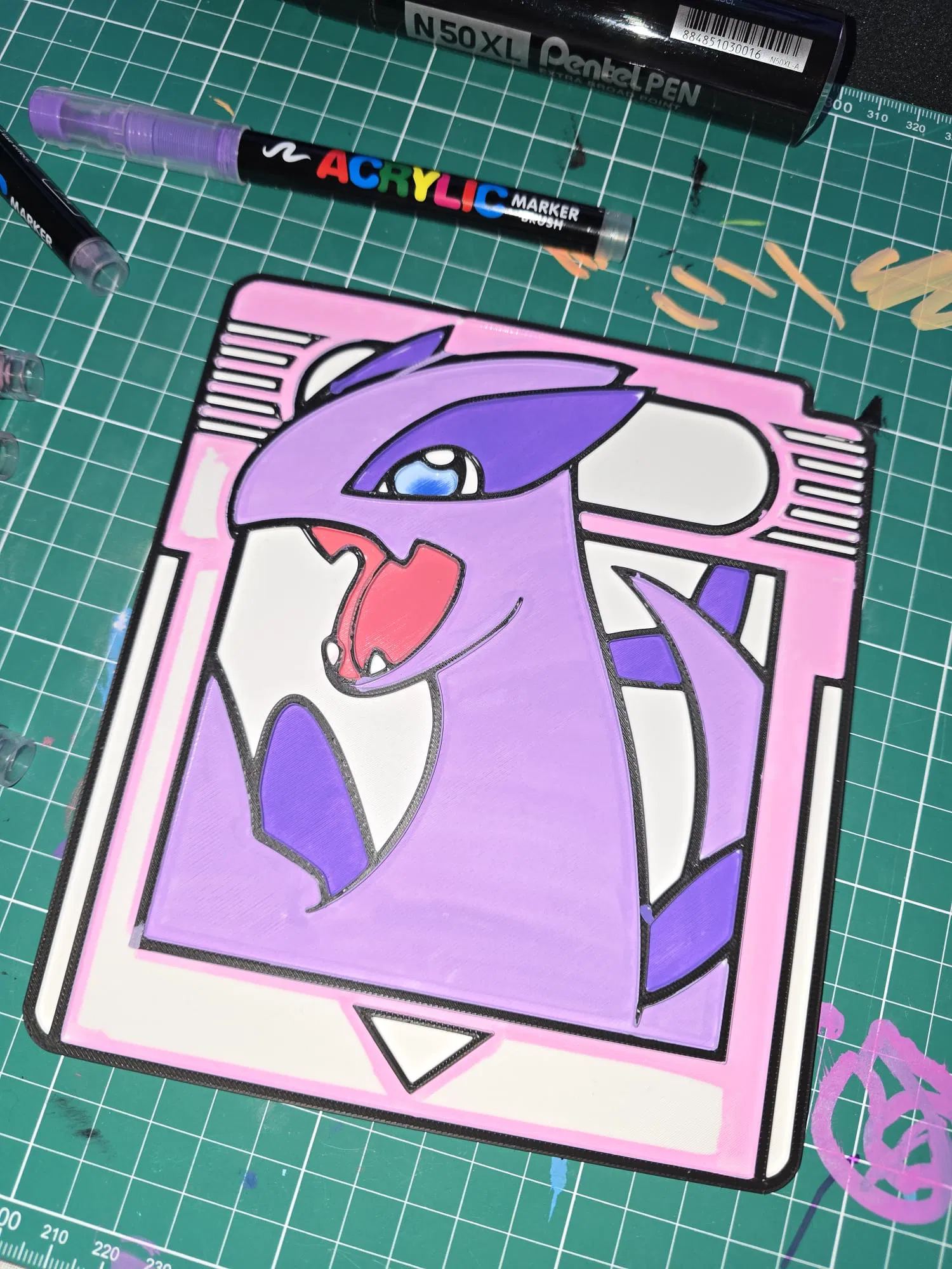 Đổi giấy phẳng thành trải nghiệm tô màu cầm tay với thẻ game Lugia Pokémon. Dùng Acrylic Brush Markers, Sharpies, bút chì màu hoặc sơn để trang trí theo ý thích—vui, sáng tạo và hợp cho bé.