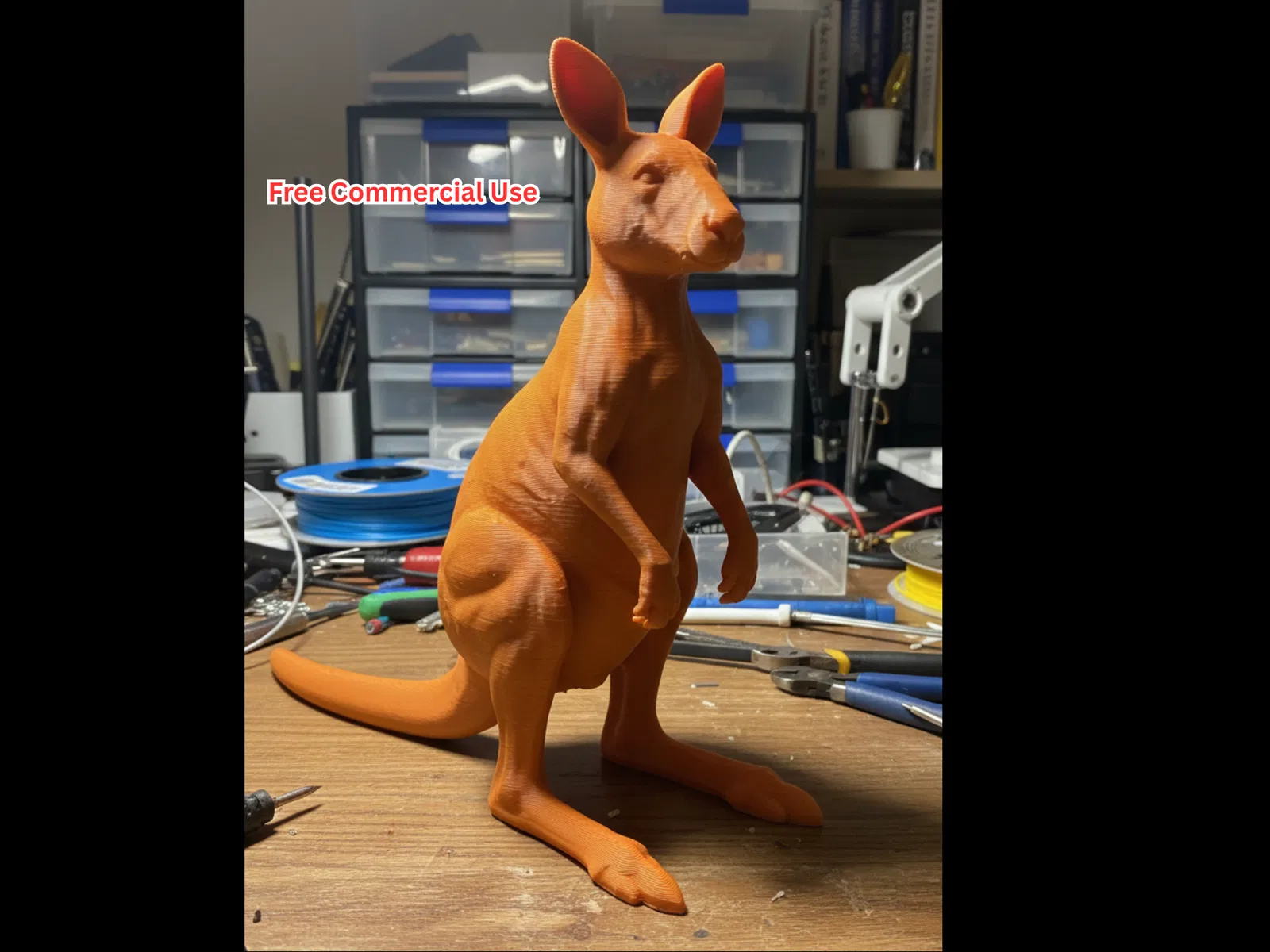 Tượng kangaroo bán hiện thực, tái hiện loài thú có túi biểu tượng của Úc và được tối ưu cho in FDM. Ảnh bàn làm việc kiểu casual cùng layer lines rõ nét cho cảm giác đúng chất bản in ngoài đời.