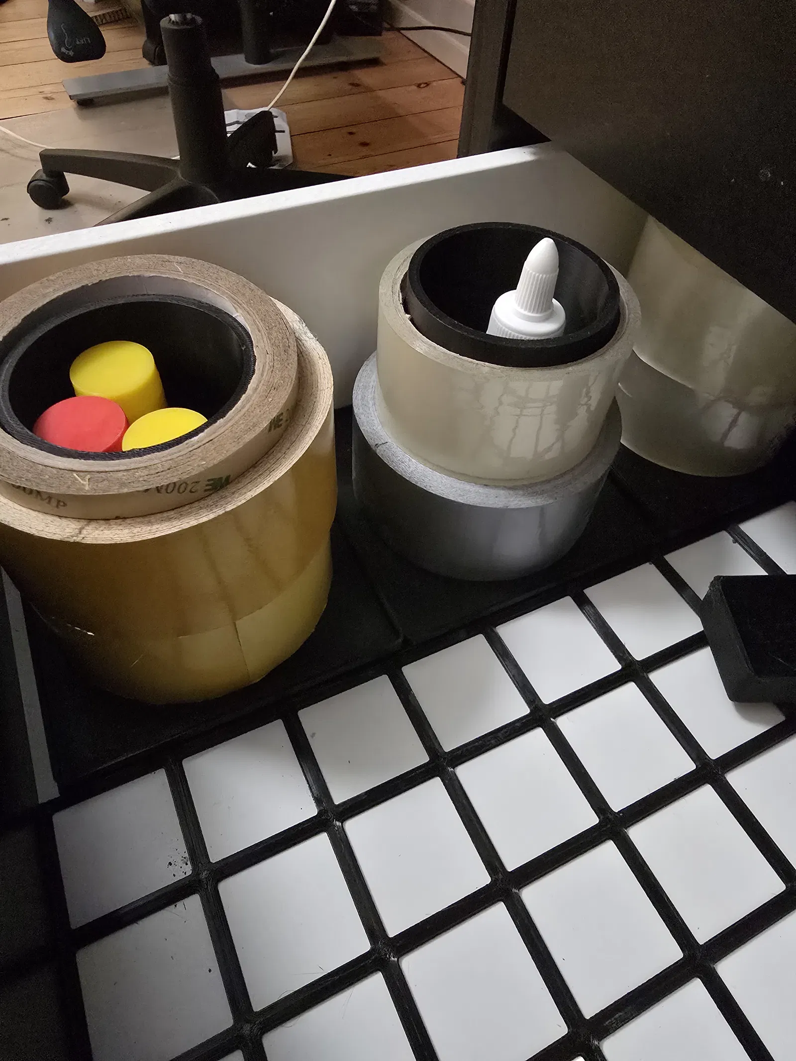 Đây là một cái giá đỡ băng keo Gridfinity mình làm, thiết kế riêng cho ngăn kéo Ikea Alex.