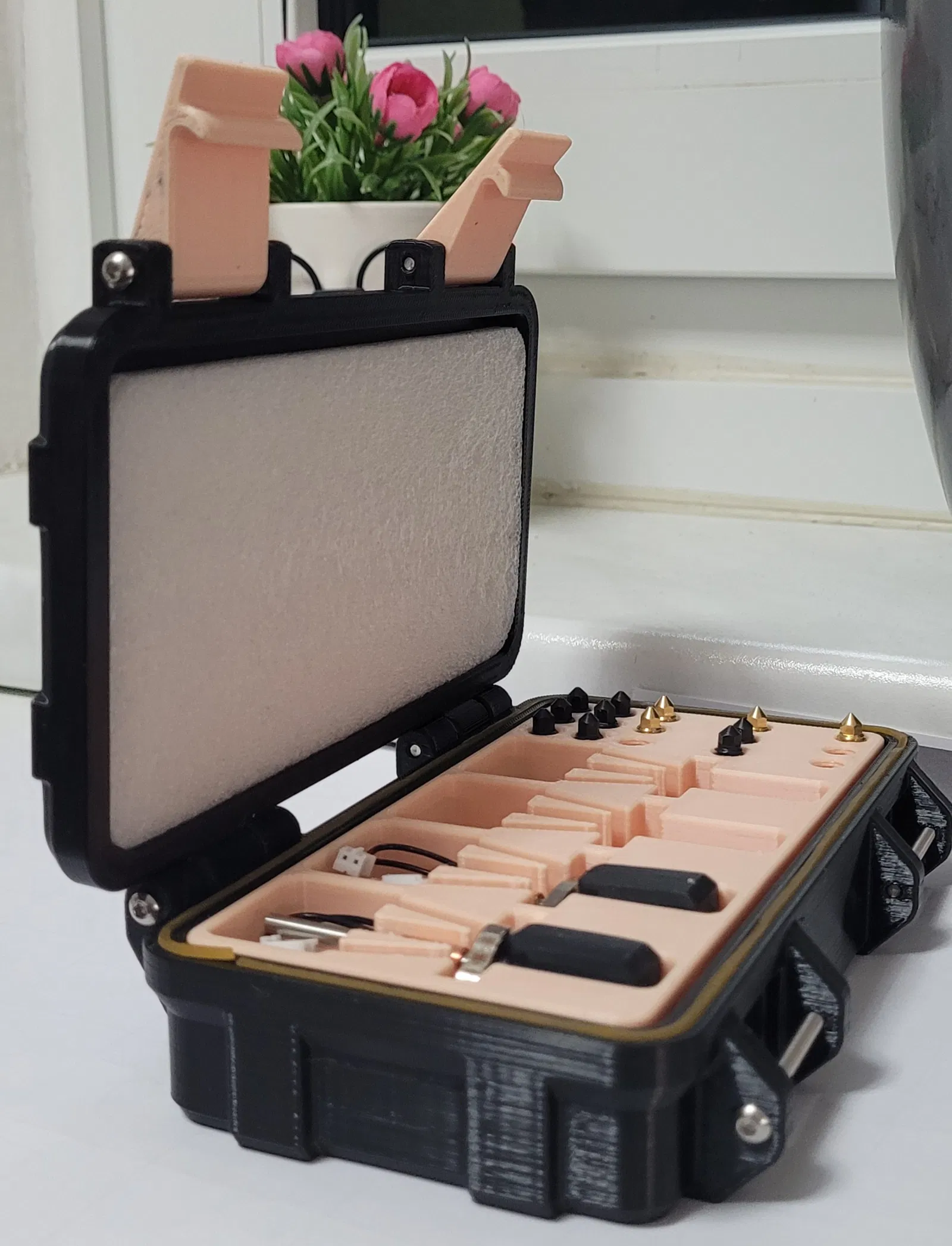 Cái box tổng kích thước 160x106x40 mm, chứa được 4 hotend và thêm 15 đầu nozzle rời.