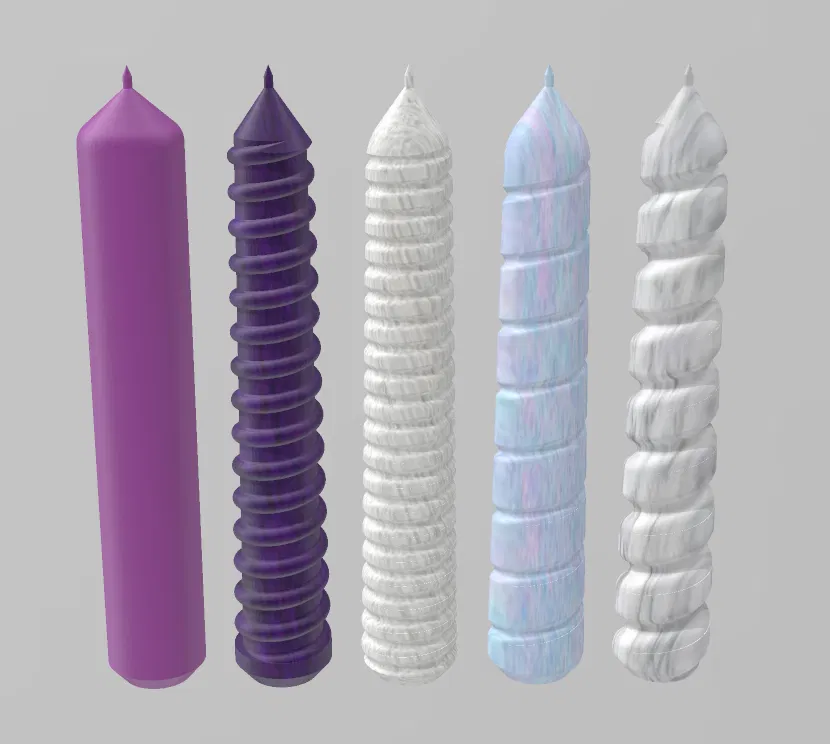 Nhiều mẫu nến taper khác nhau kèm khuôn tương ứng để bạn tự đổ nến taper tại nhà. Mình cũng đính kèm luôn file cây nến để bạn có thể làm khuôn silicone.