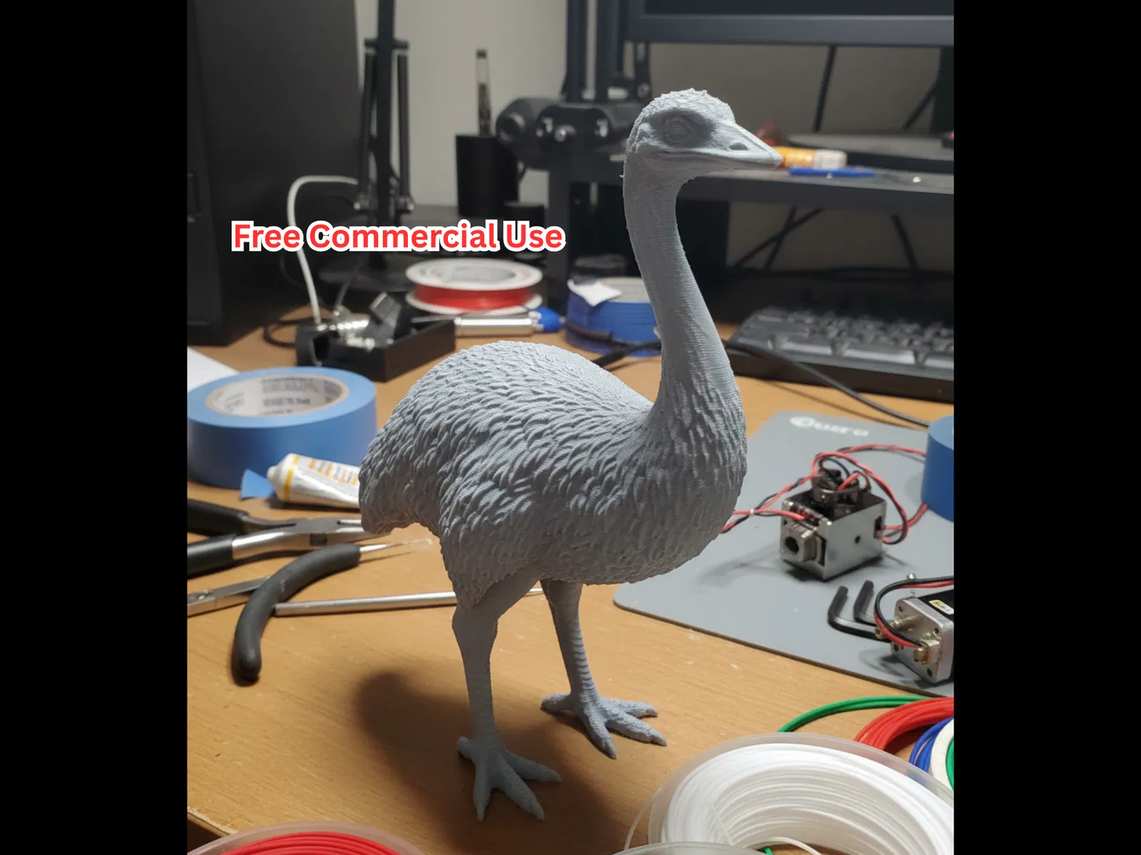 Tượng chim emu này tái hiện đúng tỷ lệ và dáng đứng, đồng thời vẫn chắc chắn và dễ in, chỉ cần in nguyên khối một mảnh.