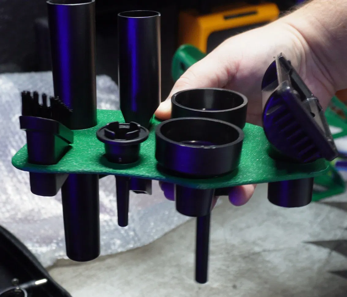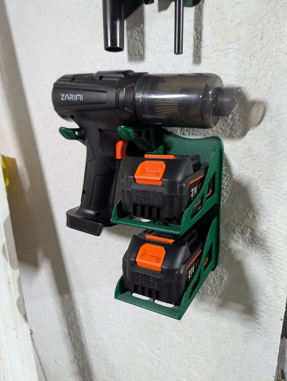 Bộ 2 giá treo tường cho Zarimi Handheld Vac: một cái để treo máy và pin, một cái để sắp xếp phụ kiện. Có bản “-B” với tấm đế phong cách slime. Gợi ý in 3 walls, 15% infill.
