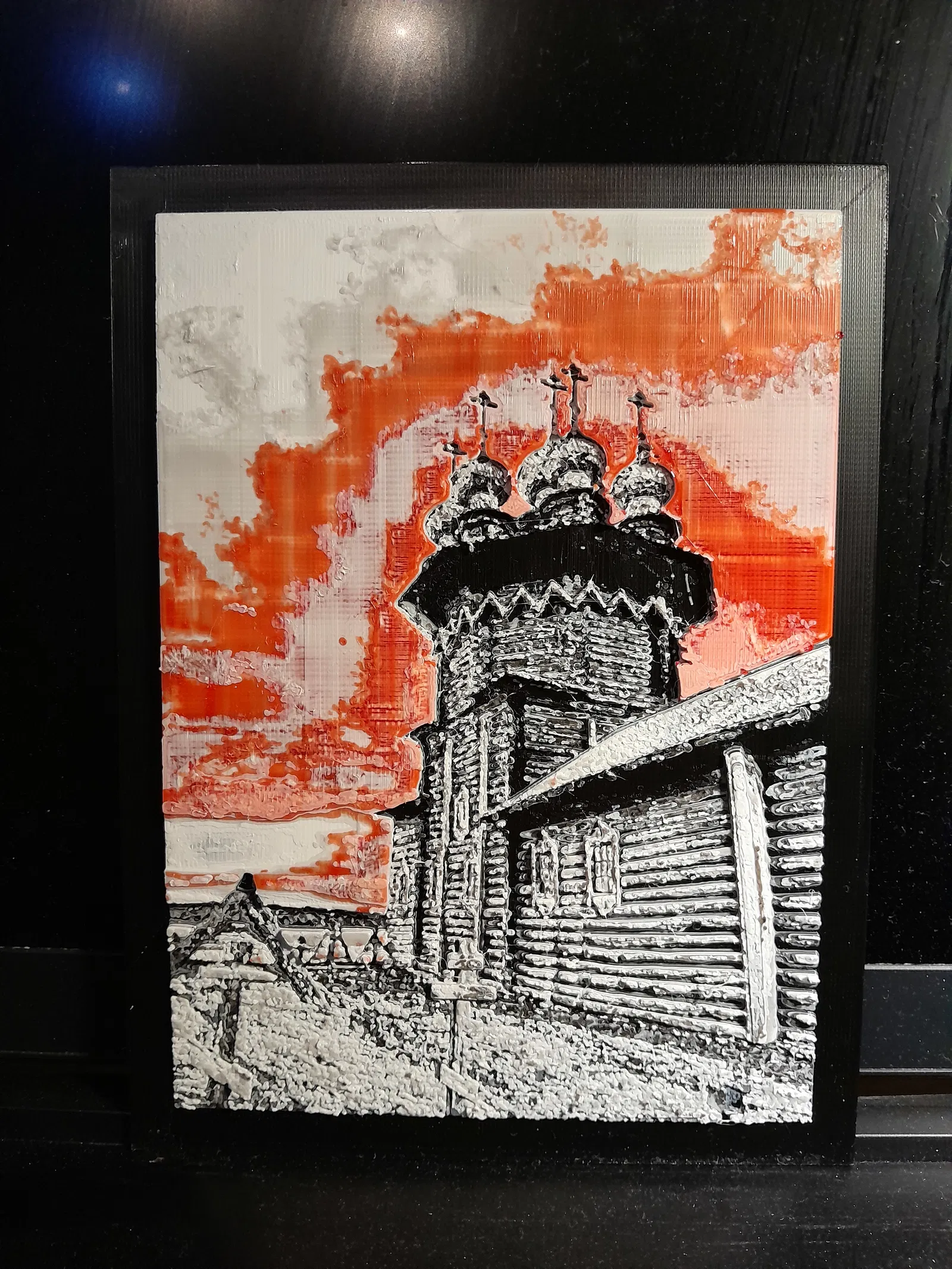 Hình ảnh mô hình Nhà thờ cổ Nga (The Russian Ancient Church) nằm trên đảo Kizhi. Thiết kế được thực hiện bằng máy in 3D monochrome, phù hợp để trưng bày hoặc sưu tầm.
