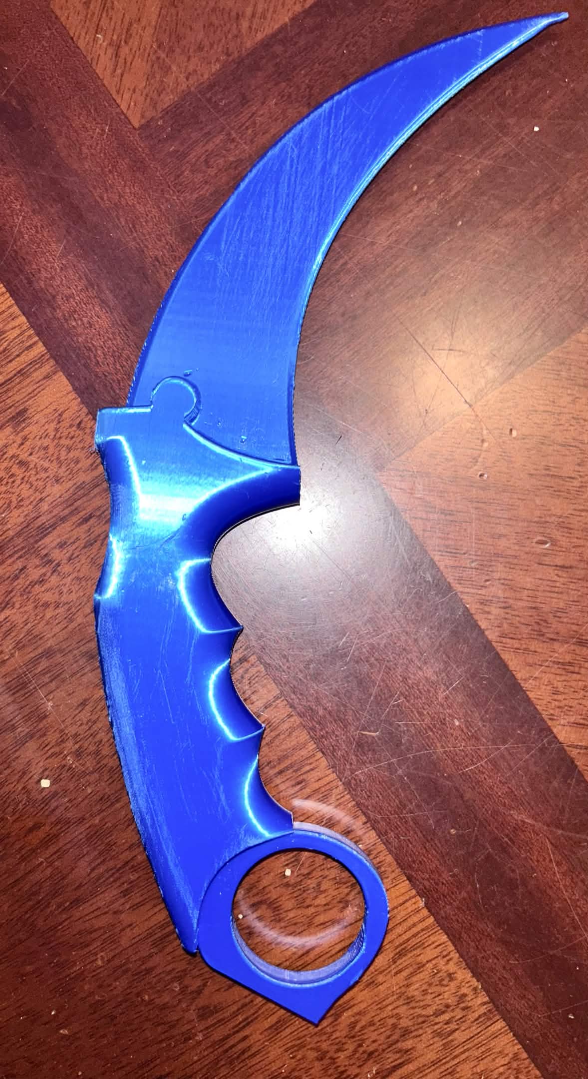 Mẫu 3D Karambit (bởi Czech_Swiss) với thiết kế dạng dao cong đặc trưng. Phù hợp để in 3D làm mô hình trưng bày hoặc phụ kiện cosplay; bạn có thể tải file và in bằng PLA tùy cấu hình máy.