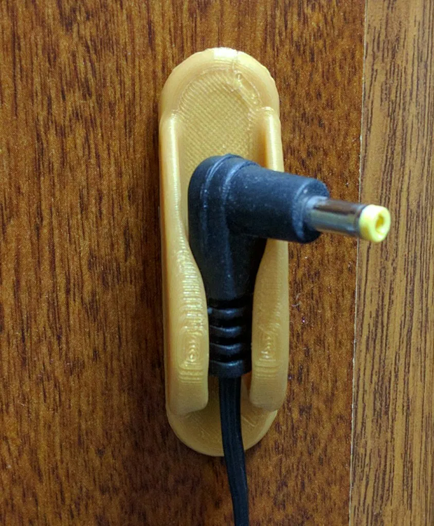 Đây là một kẹp giữ dây/cái móc treo tường dạng phổ thông để cất gọn dây nguồn của một thiết bị điện tử (ví dụ như máy hút bụi cầm tay) trong lúc thiết bị đang được sử dụng.