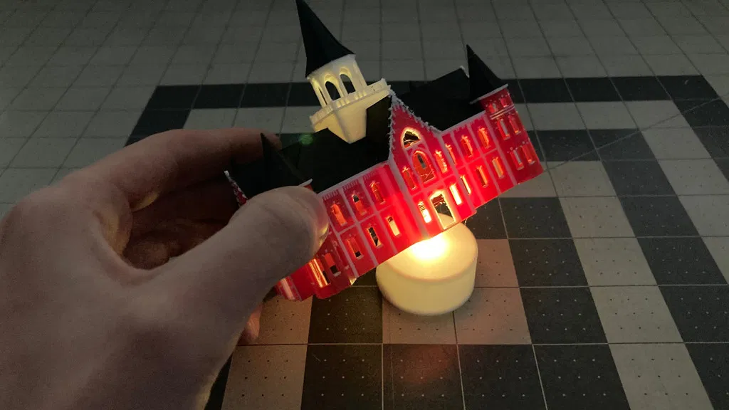 Đây là một mẫu đã được chỉnh sửa từ model Provo City Center Temple của Hlyman, được khoét rỗng để chừa chỗ cho một đèn tea light chạy pin. Mình cũng đã tô màu bản in trong file 3mf đi kèm để model khớp màu với tòa nhà thật hơn, vì đây là một trong số ít ngôi đền không có mặt ngoài trắng hoàn toàn. Tuy vậy, nếu thích thì bạn vẫn có thể in model này một màu.