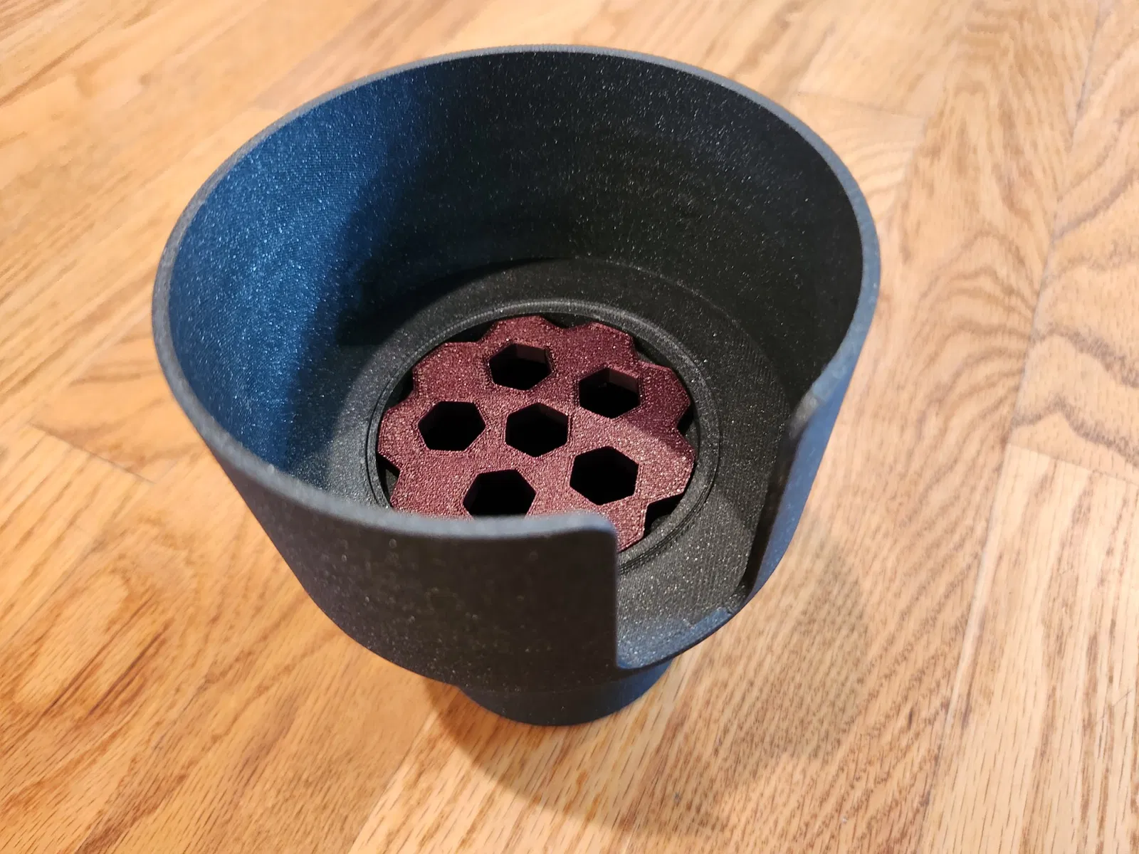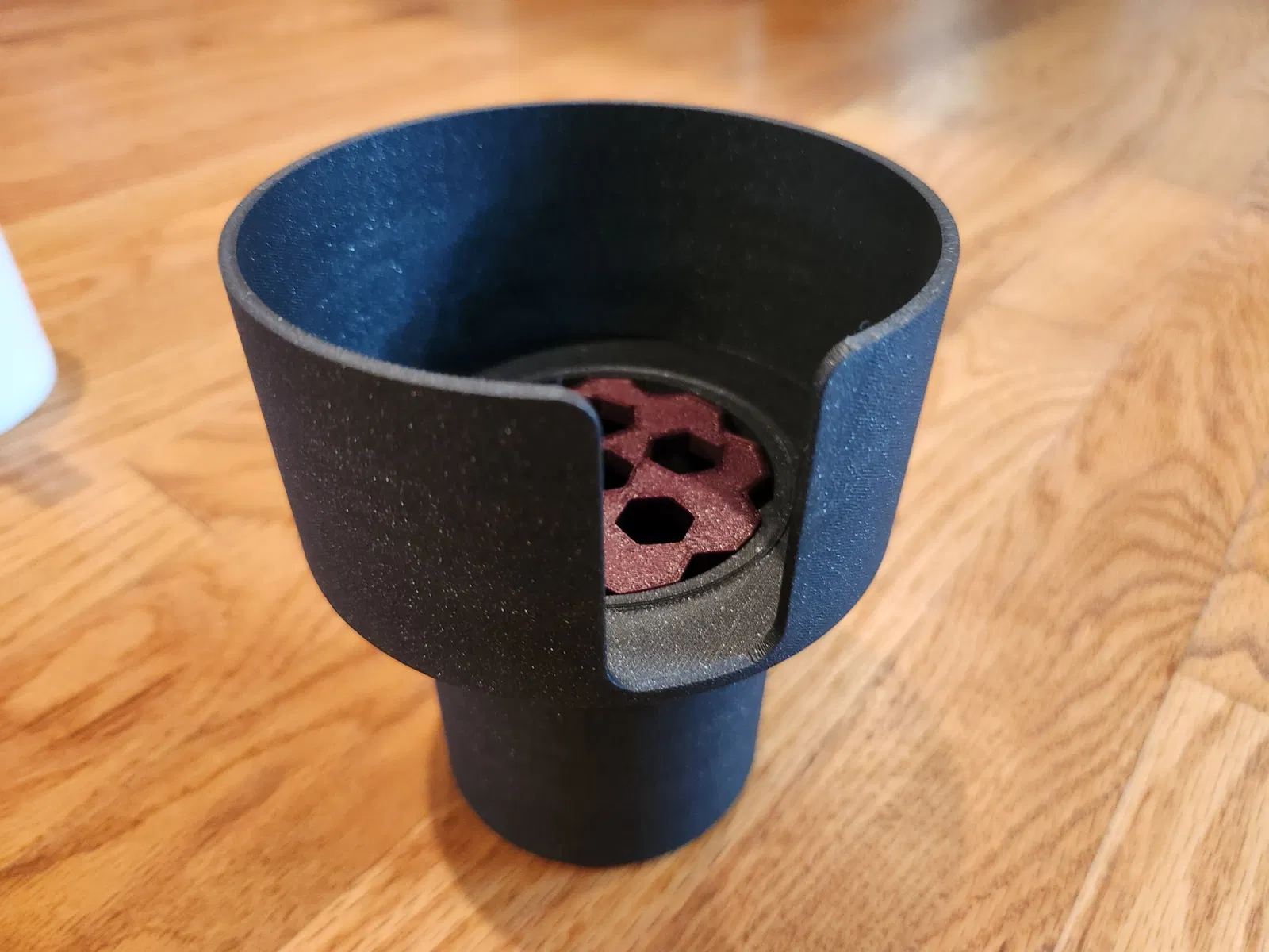 Một bộ chuyển đổi tiện dụng sẽ phù hợp với hầu hết các chủ sở hữu cúp xe và cho phép bạn giữ một cách an toàn một cốc có tay cầm khi đi du lịch. Đây là một bản in dễ dàng không yêu cầu không có vành hoặc hỗ trợ, và có ba phần. Các phần trên và dưới có thể được kết nối một cách thuận tiện với bản in bài, và sau đó cống đơn giản đặt ở trên.