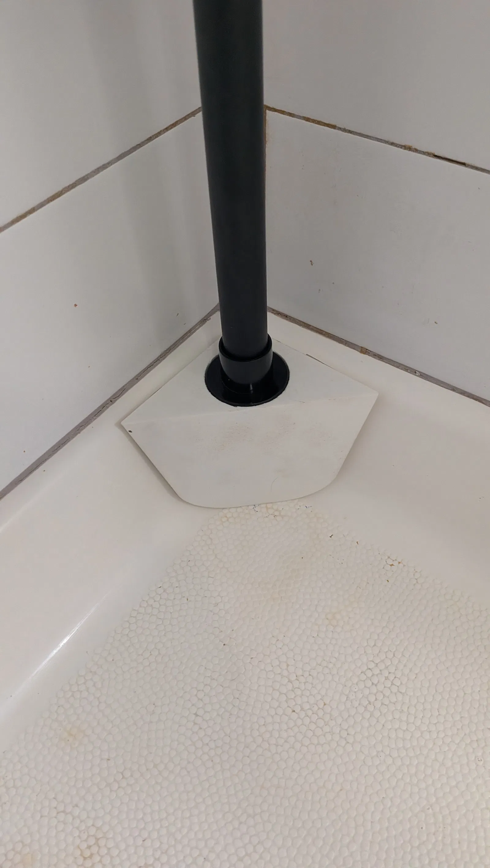 Mình có cái kệ tắm dạng thanh rod kéo giãn, nhưng để không ngay ngắn do sàn bị cong, nên mình làm cái spacer này để khắc phục.
