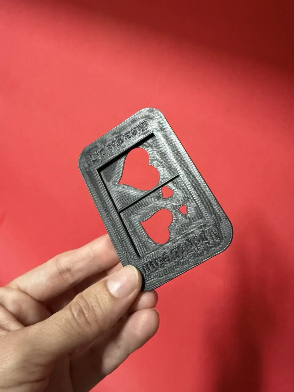 Sau khi in các bản gốc, tác giả đã “unmeshed” model và tạo thêm một khay (tray) hình trái tim cho LichtBeam projection attachment. Đã thử nghiệm thực tế và hoạt động ổn định.