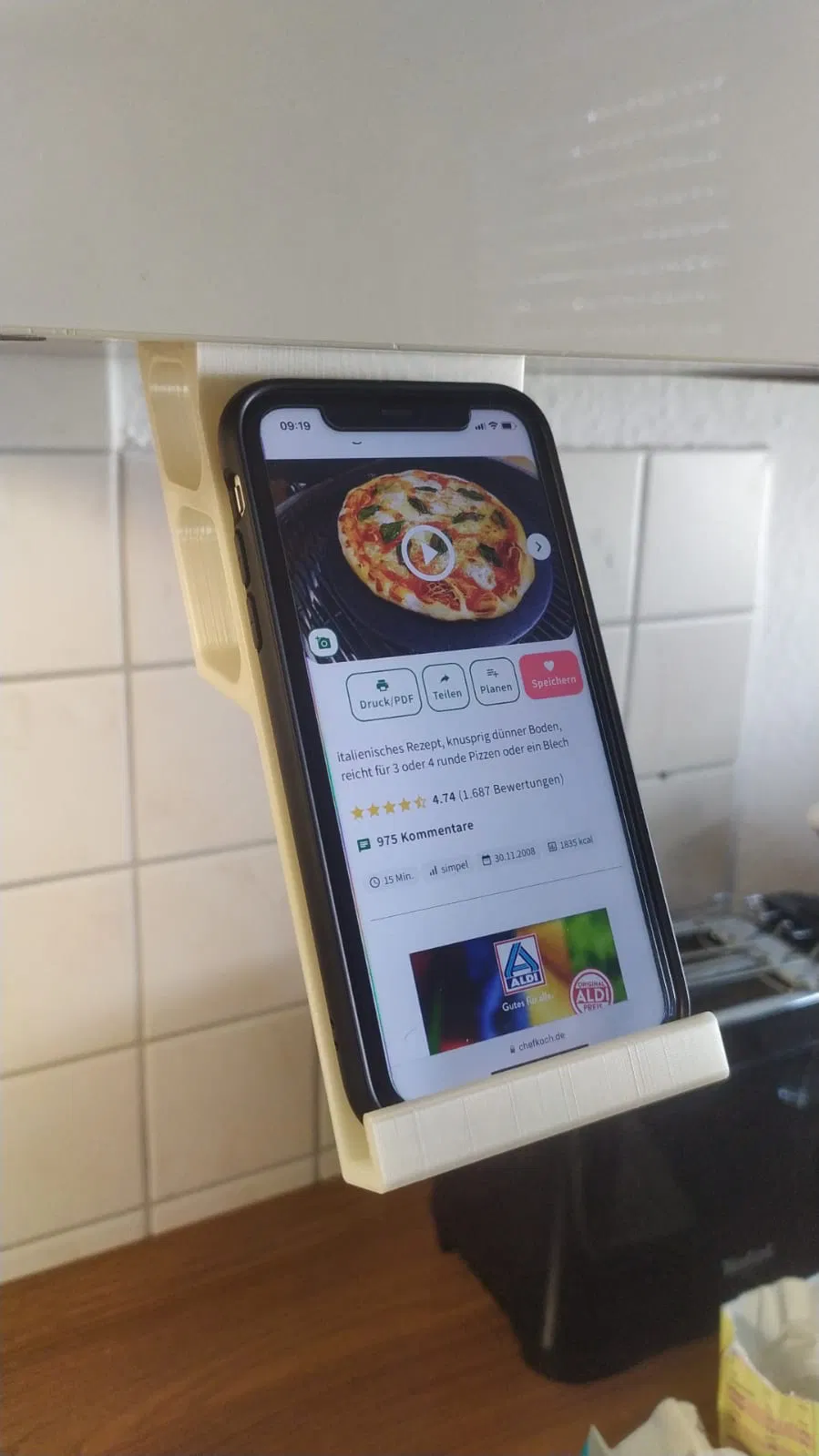 Küchenhelfer Smartphone – Giá đỡ điện thoại cho tủ bếp treo