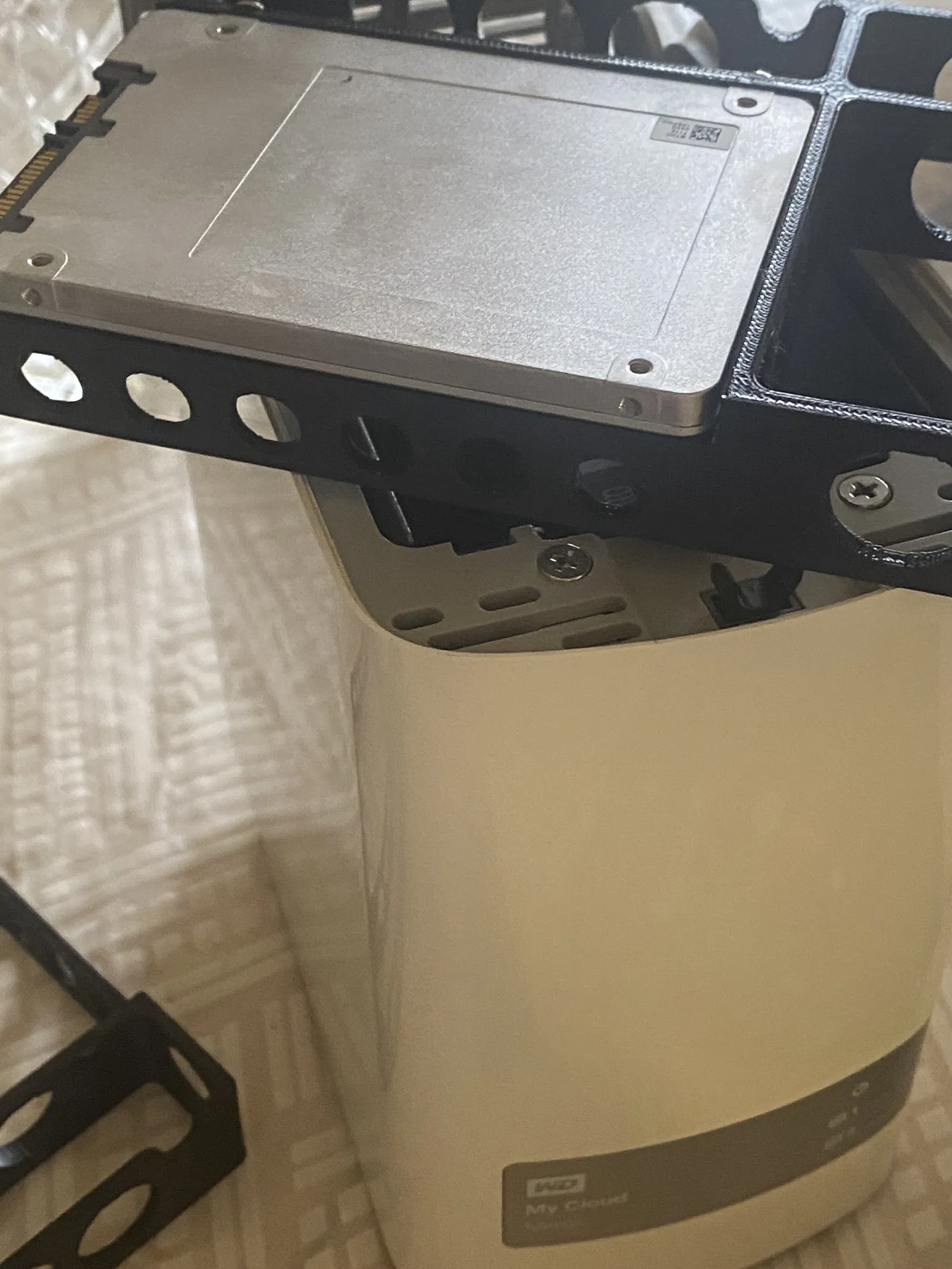 Mình muốn dùng adaptor gắn ổ 2.5" SSD vào vị trí ổ 3.5" trong Western Digital MyCloud, mà tìm hoài không thấy cái nào phù hợp với kiểu khay trượt (caddy style slider) để canh đúng vị trí đầu cắm ổ đĩa… nên tự thiết kế một cái.