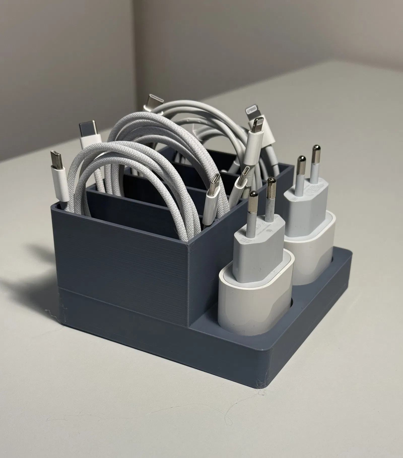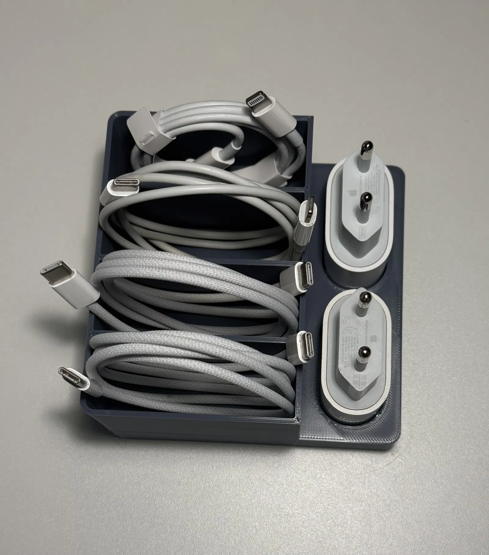 Mình làm mẫu này để sắp xếp gọn gàng các cục sạc Apple và dây cáp đi kèm.