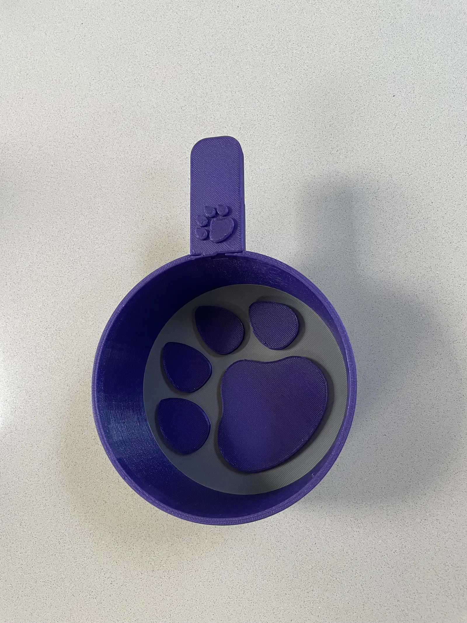 Tôi đã phối lại mô hình này để cung cấp phiên bản 2c cho những con chó lớn hơn (hoặc nhiều). Ngoài ra, đã làm lại tay cầm ngắn hơn (vì vậy nó sẽ dễ dàng phù hợp trong các thùng chứa thức ăn thú cưng lớn) với phần gắn/cốt thép mạnh hơn cho trọng lượng tăng thêm. Một số hỗ trợ cần thiết cho tay cầm.
