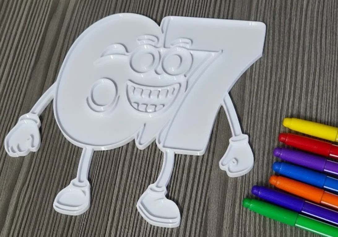 Biến việc in 3D thành một chuyến phiêu lưu nghệ thuật! Mẫu “67” này được thiết kế như một trang tô màu dạng không gian, khuyến khích các bé thỏa sức sáng tạo. Với viền nổi và các vùng lõm, mẫu rất hợp để: