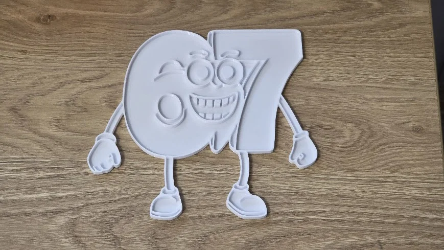Mẫu số “67” dạng trang tô màu 3D với viền nổi và vùng lõm, giúp bé dễ tô marker hoặc đổ sơn acrylic/poster paint. In nhanh, thiết kế phẳng, không cần supports—hợp làm quà DIY hay trò chơi ngày mưa.