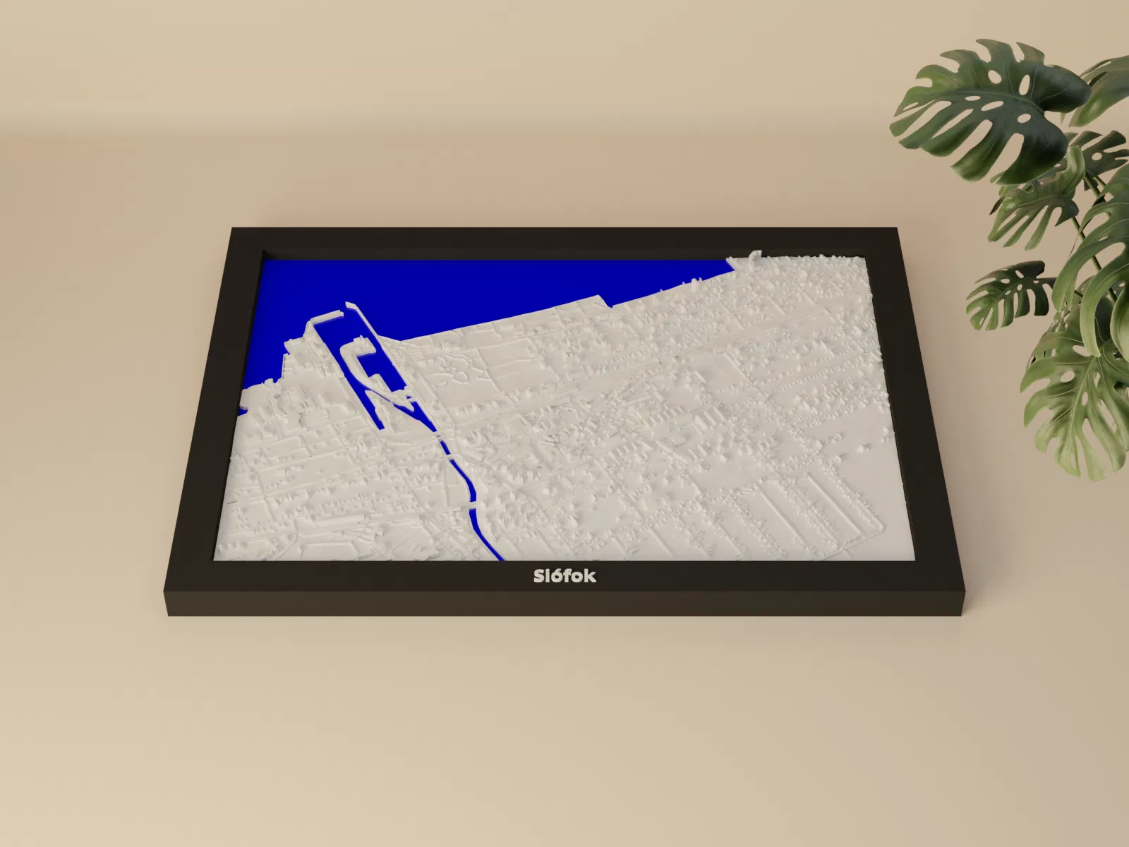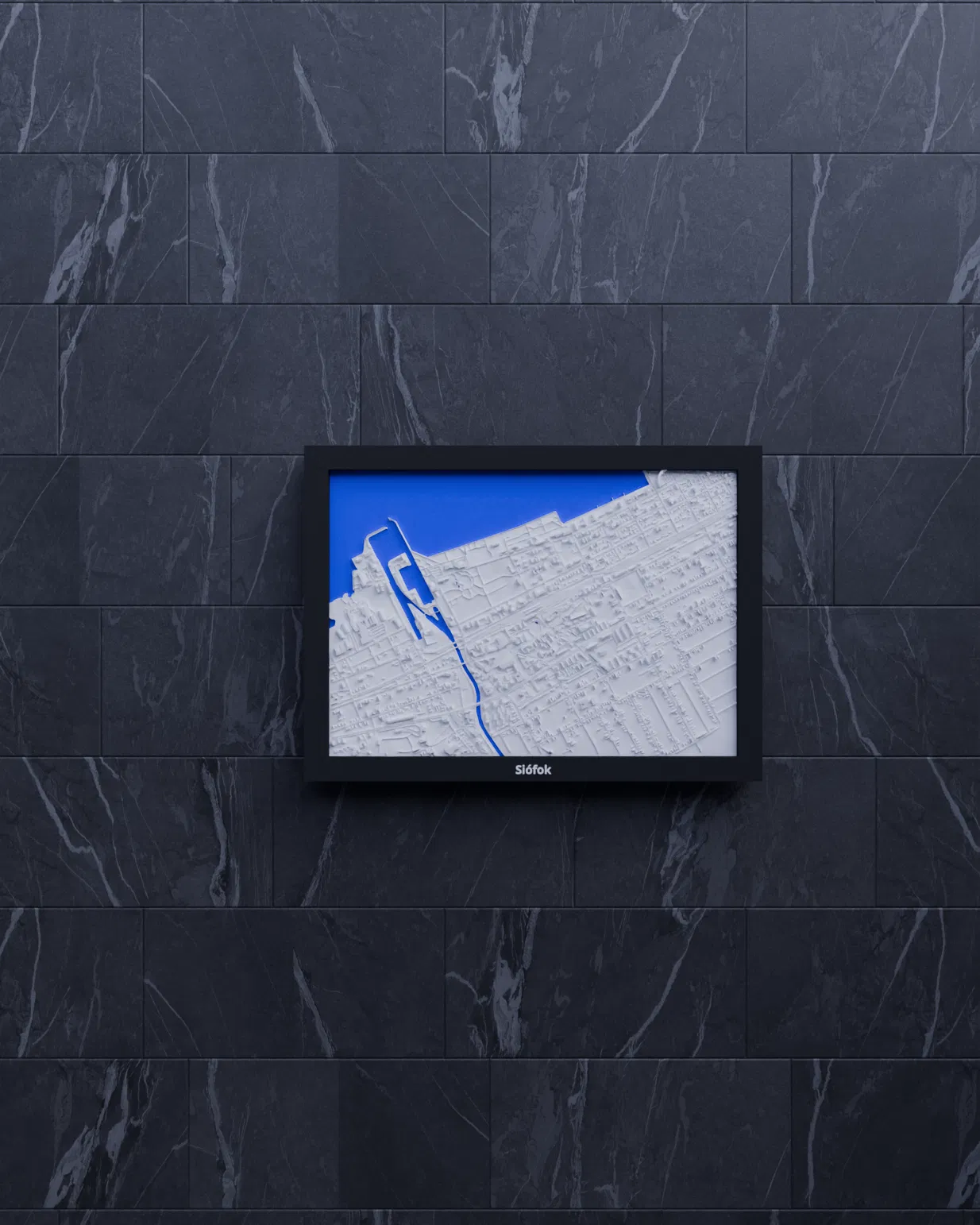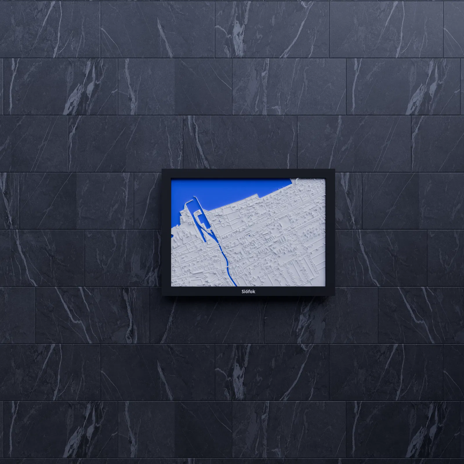 Mô hình địa hình 3D thu nhỏ Siófok (Hungary) dựa trên dữ liệu địa lý thực, thu nhỏ từ khu vực 2.392 x 1.671 km xuống 170.5 x 119.5 mm. Có sẵn nhiều khung kèm lỗ treo, hỗ trợ in multicolor/single color.