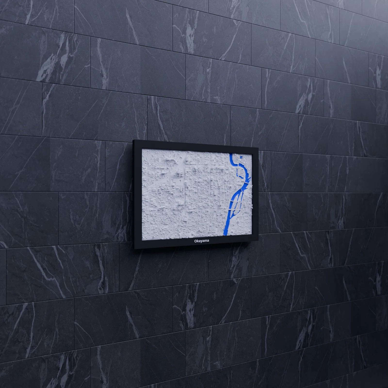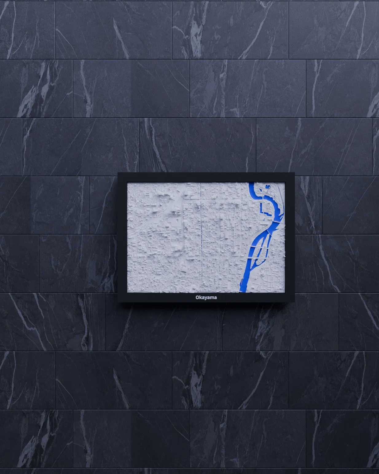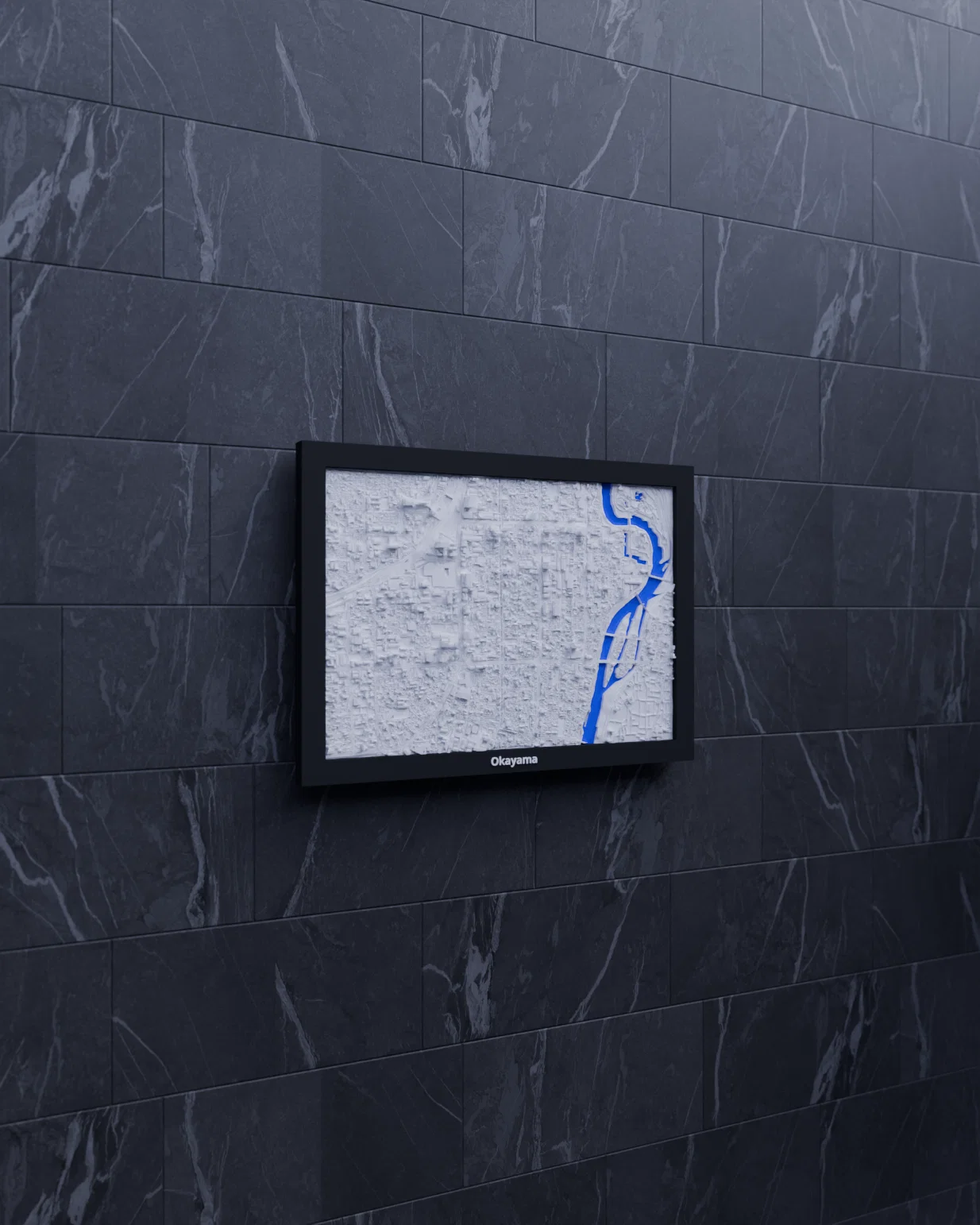 Tái hiện cảnh quan địa hình Okayama (Nhật Bản) bằng mô hình 3D topographic thu nhỏ, dựng từ dữ liệu địa lý để cho bề mặt chân thật. Kèm nhiều lựa chọn frame có lỗ treo; phù hợp trưng bày, học tập hoặc làm quà tặng.