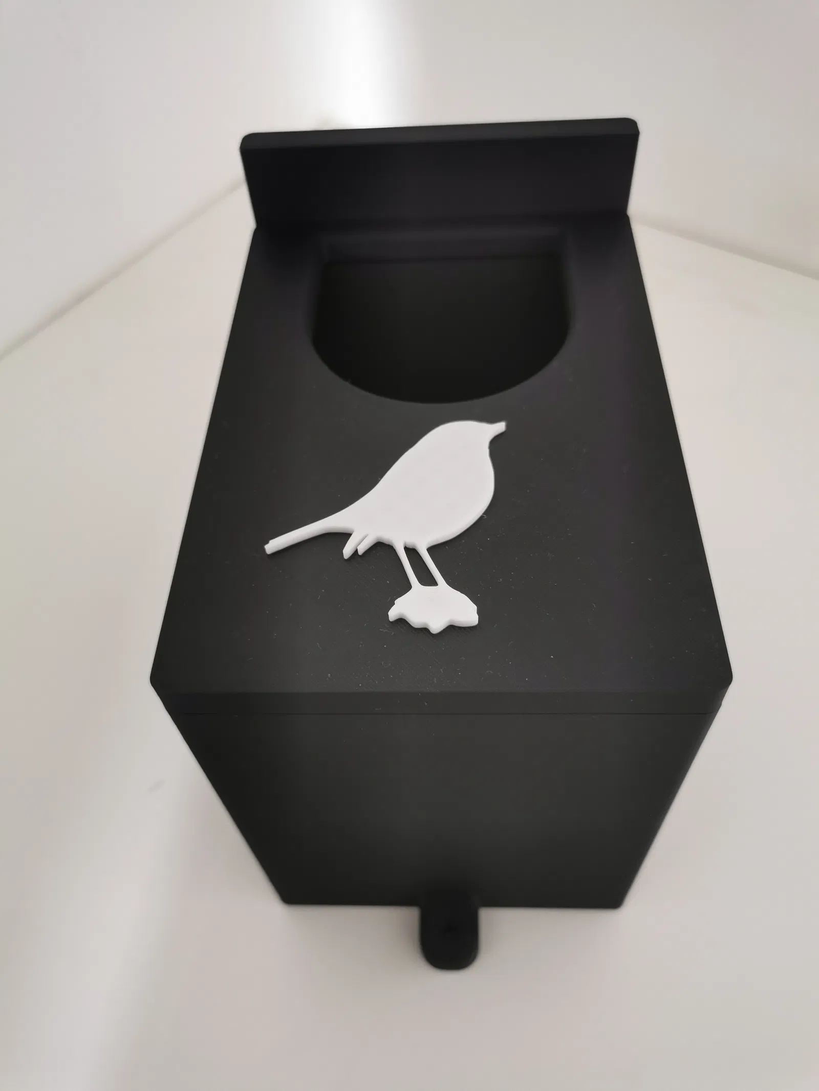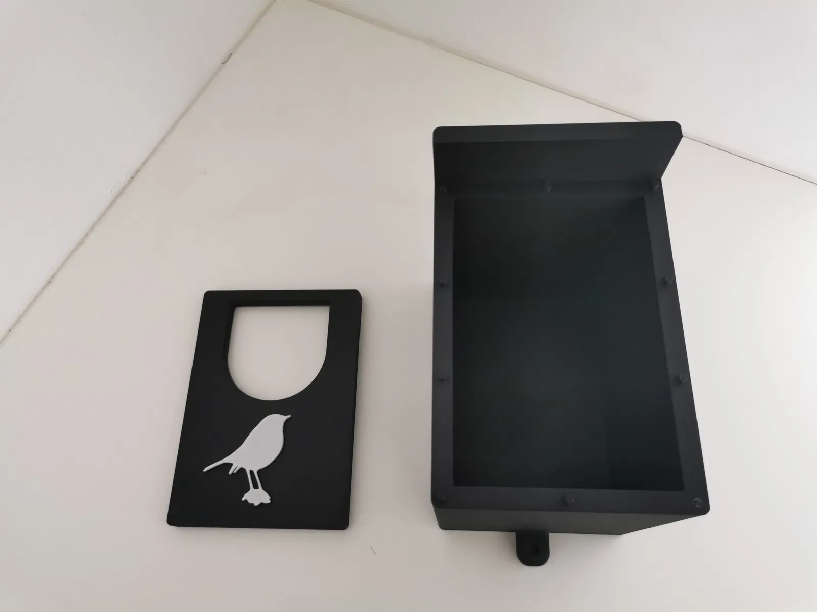 Đây là một cái tổ chim (nichoir) đẹp cho chim cổ đỏ (rouges-gorges) của bạn. Phần mặt trước lắp khớp vào phần phía sau, nên bạn có thể tháo ra để vệ sinh tổ hoặc lấy tổ chim bên trong. Cả hai phần đều in được mà không cần support nào. Nichoir có thể được cố định bằng một con vít ở mặt sau, và thêm một con vít ở phía dưới để tránh bị xê dịch.