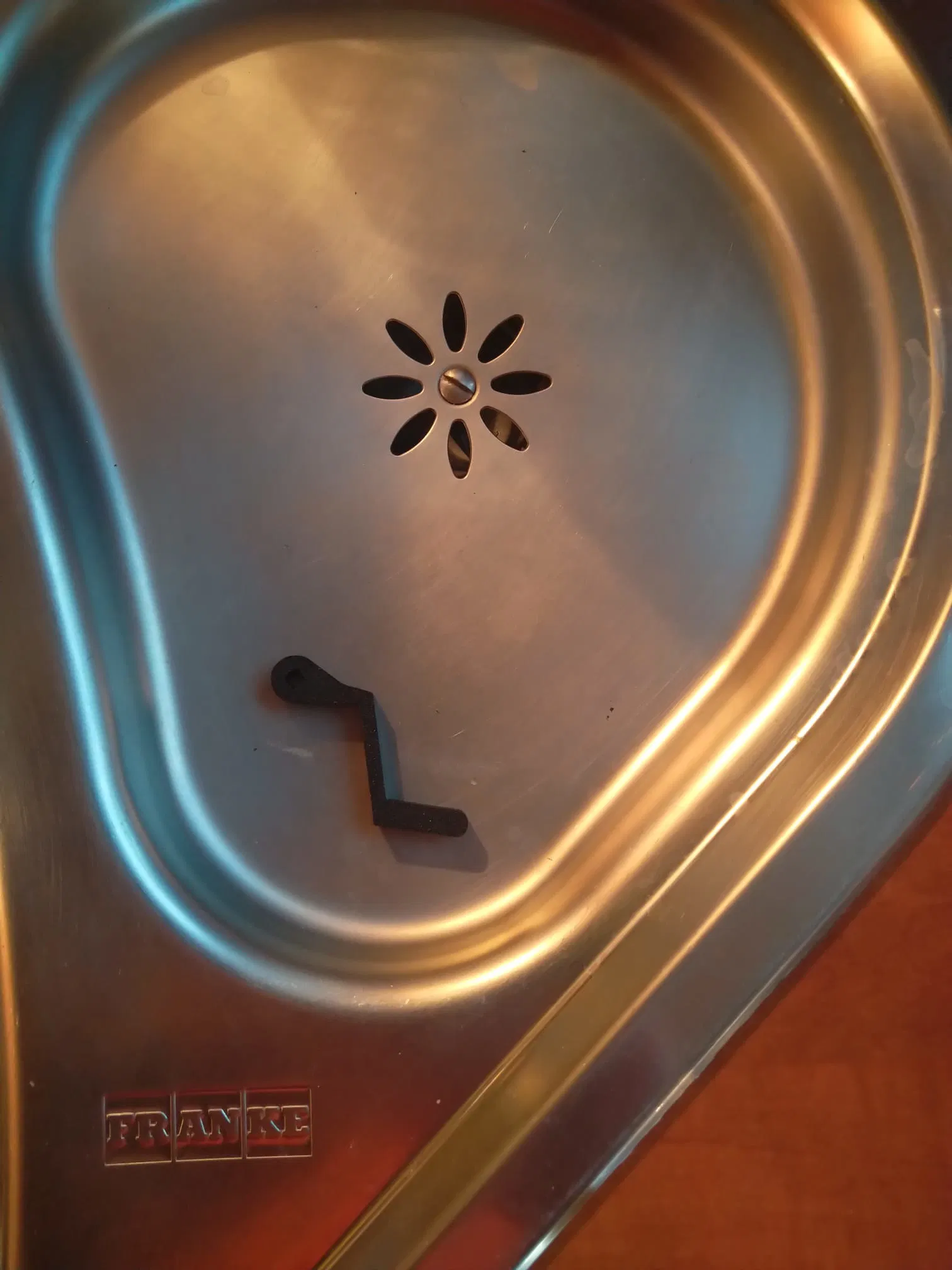Chi tiết “Franke Repair” dùng để sửa thanh kéo xả (waste linkage) của bồn rửa inox Franke. Mình in bằng PETG, layer height 0,2 mm; bản thử đầu tiên infill 25% tới giờ vẫn chạy rất ổn.