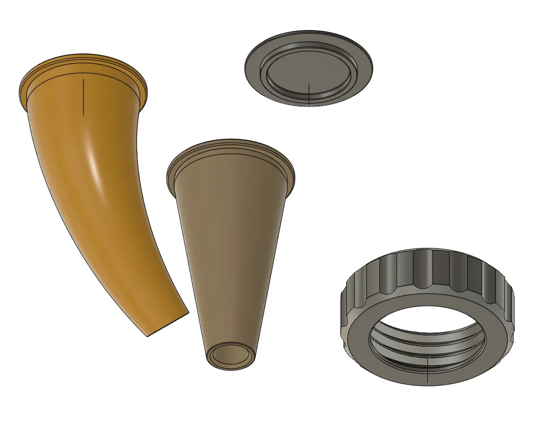 Đây là một hệ phễu 3D-printed dạng modular được thiết kế cho hũ silica gel dùng ren M42x4.