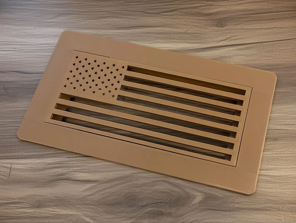 Nắp lỗ gió sàn HVAC kích thước 4x10 với nhiều mẫu lưới (grill) thay đổi được. In phần đế trước (có thể phải đặt ngang để vừa P1S), rồi chọn grill design. Phù hợp làm decor, tránh chỗ bị giẫm lên.