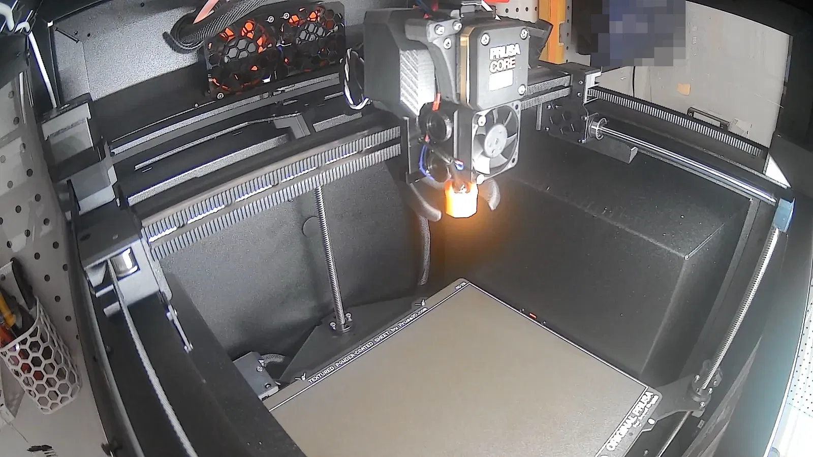 Kết quả cuối là một bộ camera cực kỳ gọn, nhìn vào bên trong Prusa Core One rất rõ. Để tích hợp camera với Prusa Connect, mình dùng Docker setup này: https://github.com/jtee3d/prusa_connect_rtsp. Cài đặt rất đơn giản, khuyến nghị dùng.