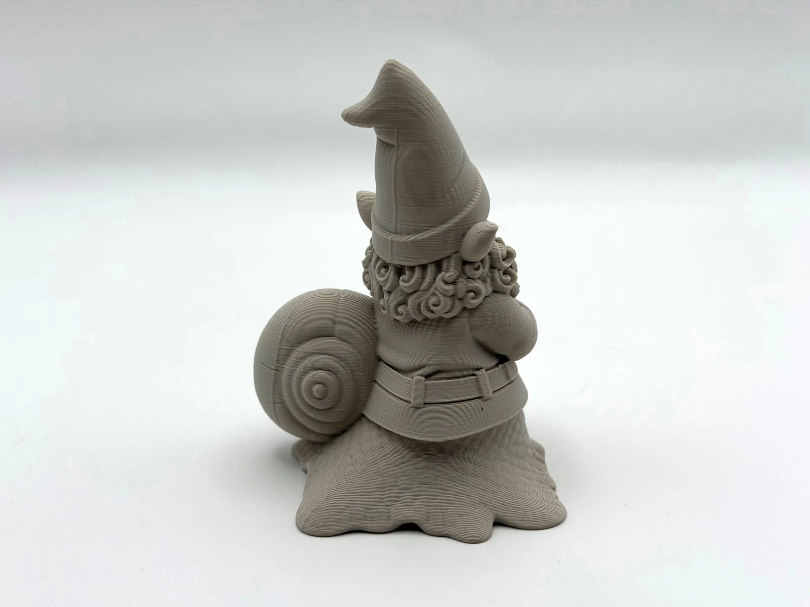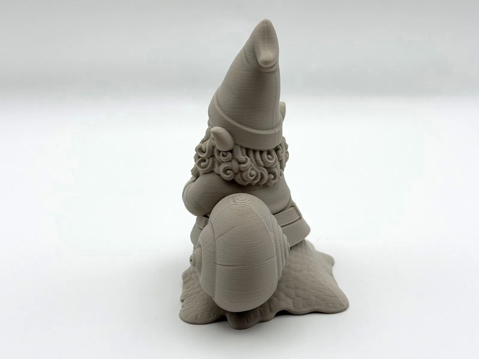 Snail Garden Gnome – “vệ sĩ” sân vườn chậm mà chắc, kết hợp gnome cổ điển với tạo hình ốc sên độc đáo. In cần supports; dùng organic-style supports và chỉnh Z-top height để tháo supports dễ, sạch.
