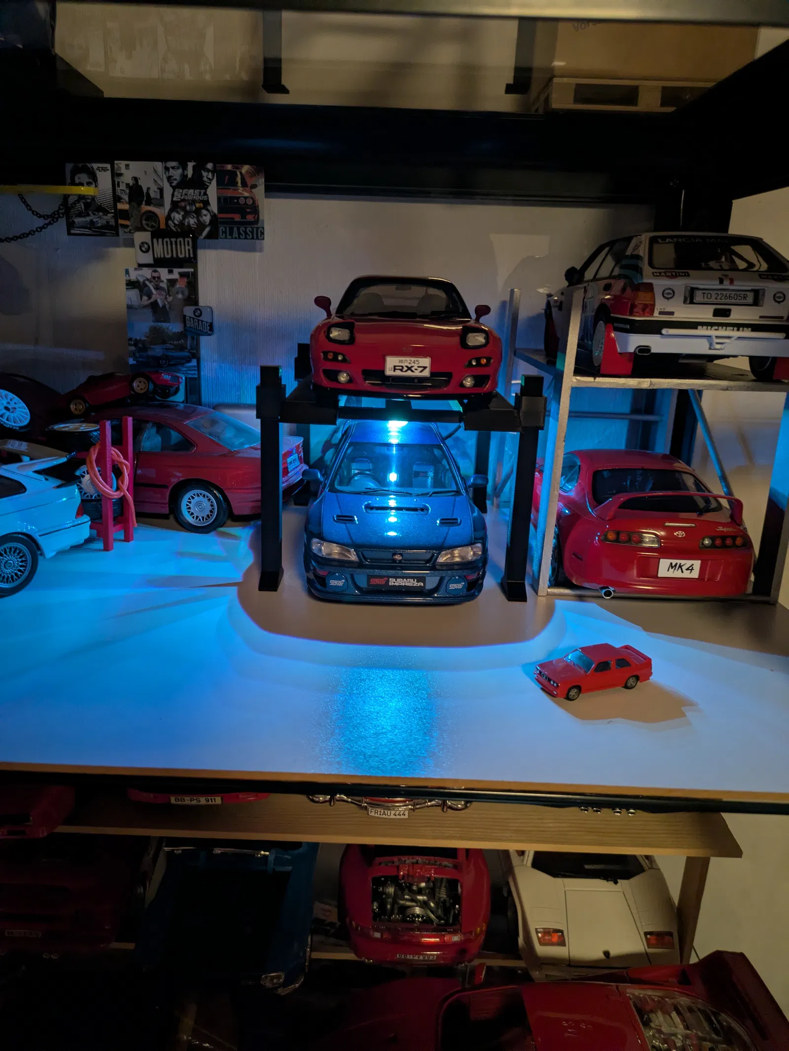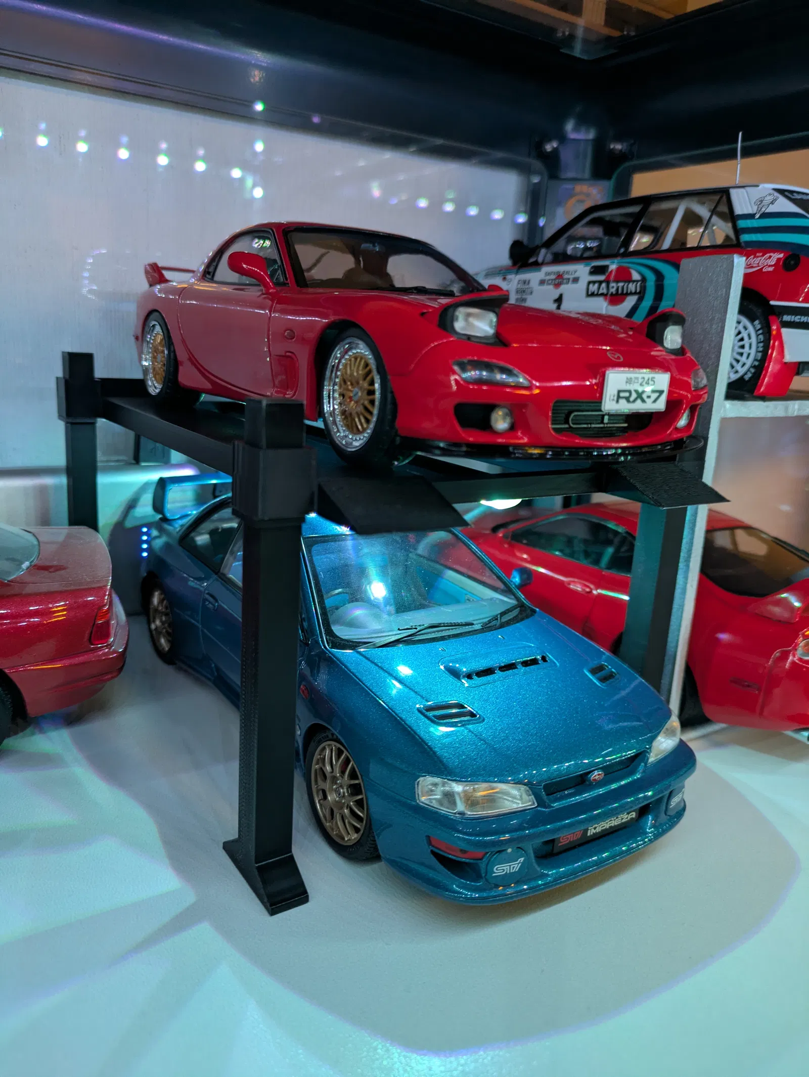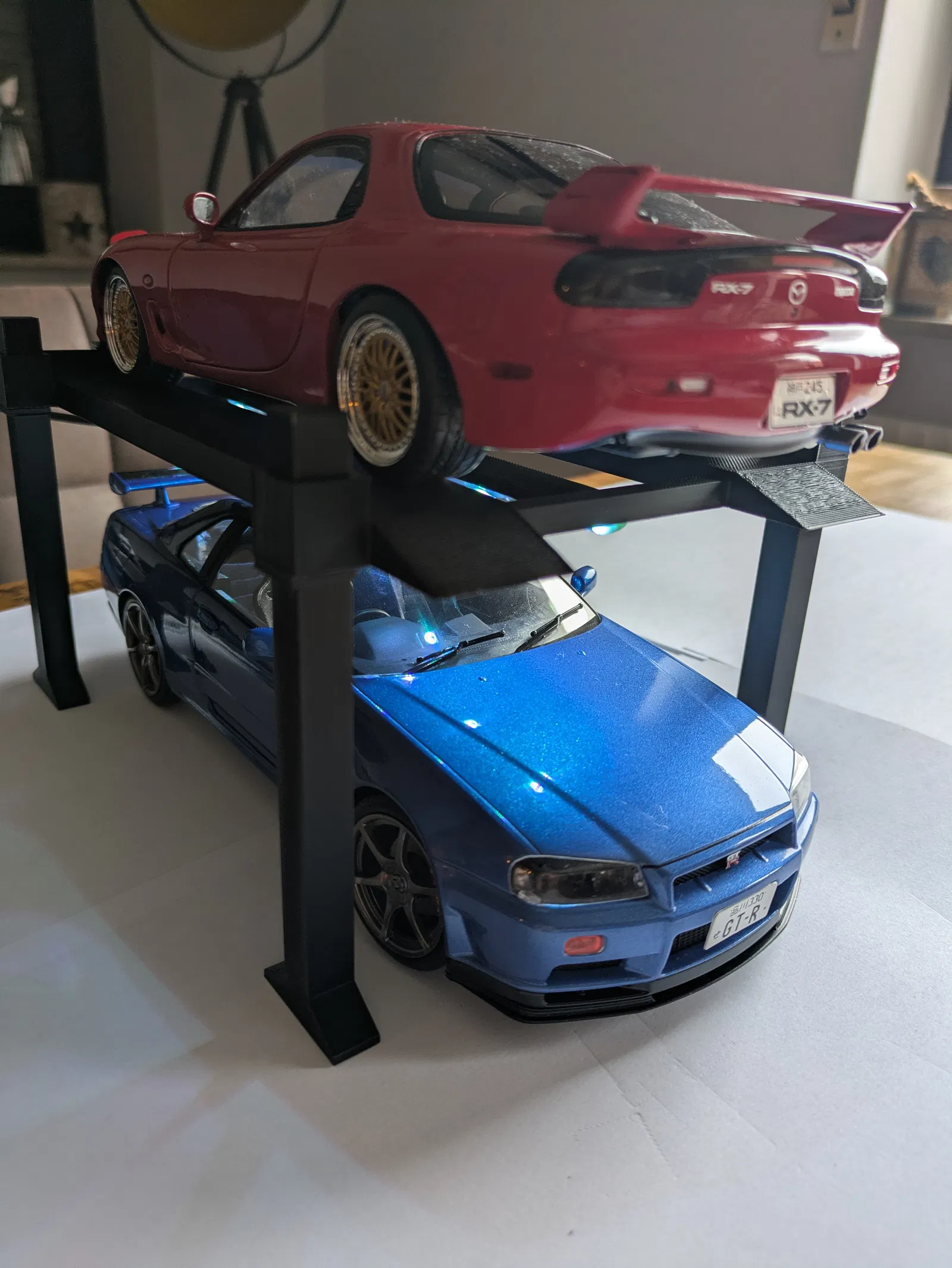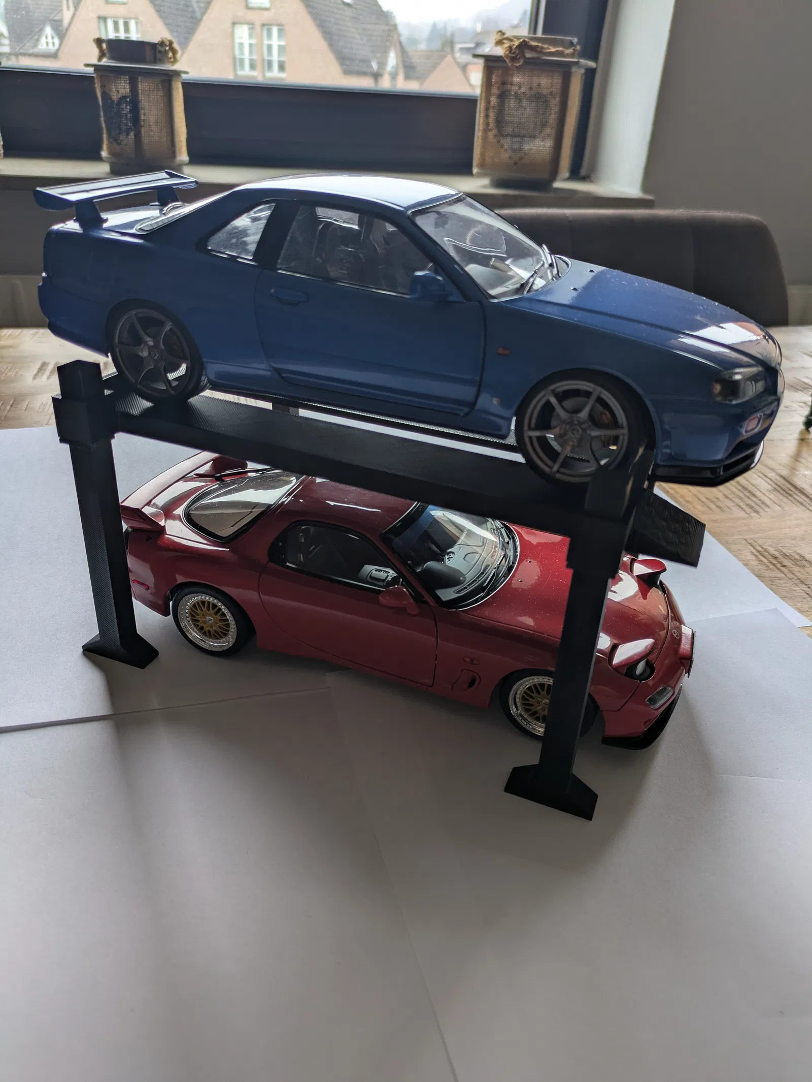 Bệ nâng xe (Car Lift) tỷ lệ 1/18, lắp ráp không cần ốc/vít, trưng bày được 2 xe model. Có thể gắn thêm dải LED để chiếu sáng chiếc xe ở tầng dưới, phù hợp góc garage và display.
