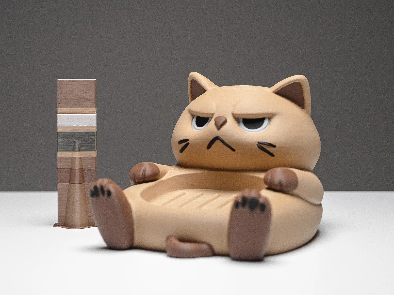 Sau đó mình chỉnh sửa mô hình và tinh chỉnh để biến nó thành một khay xà phòng hình mèo cau có (điều chỉnh hình dáng, thoát nước và tính năng sử dụng).