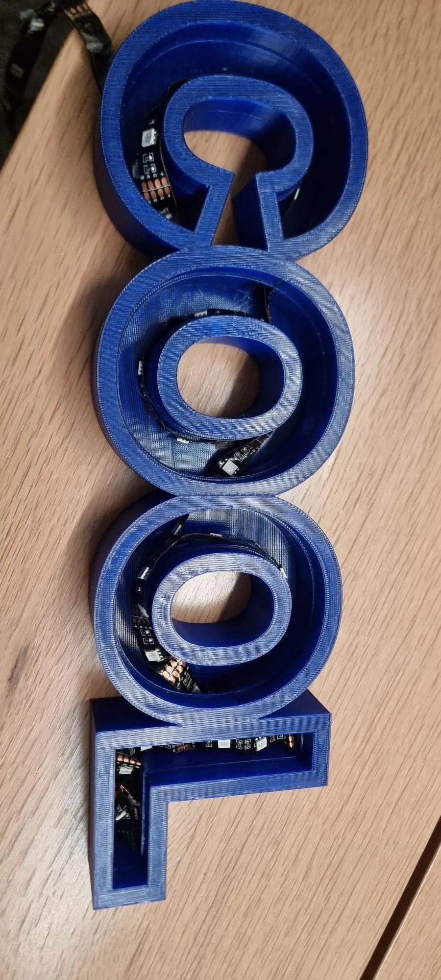 Khi in xong, gắn dải đèn LED light strips vào bên trong, rồi lắp các nắp cho từng chữ.