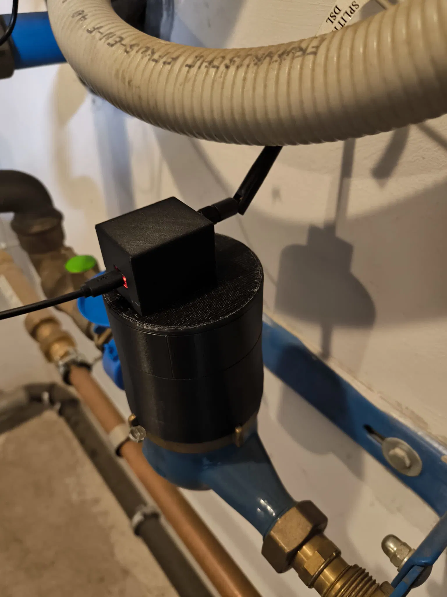 AI on the edge cho đồng hồ nước Fahrbach. Mình dùng ESP32-Cam kèm module USB. Cái vỏ (housing) được tích hợp ở đây cũng có thể tải riêng — xem link đính kèm bên dưới. Nếu khoảng cách tới đồng hồ nước bị quá sát thì thêm một spacer, hoặc thêm spacer nữa.