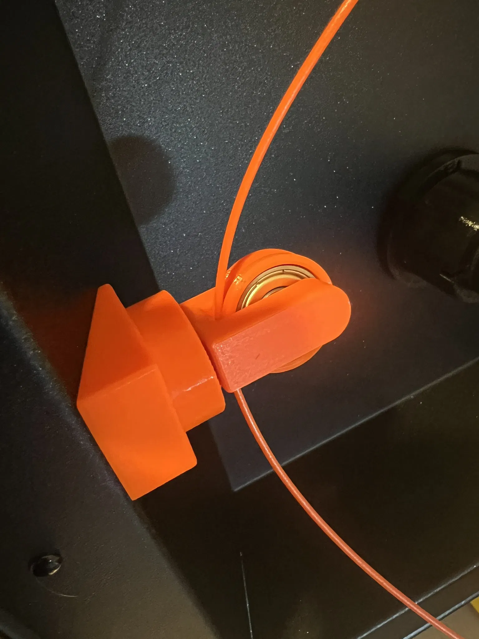 Dẫn filament cho Core One khi bạn không dùng spool holder và in từ dry box. Thiết kế fit rất chặt nên không cần dán keo. In PETG 2 walls, infill 15%. Lắp với 2 vòng bi 608 và 4 nam châm 10x3 mm.
