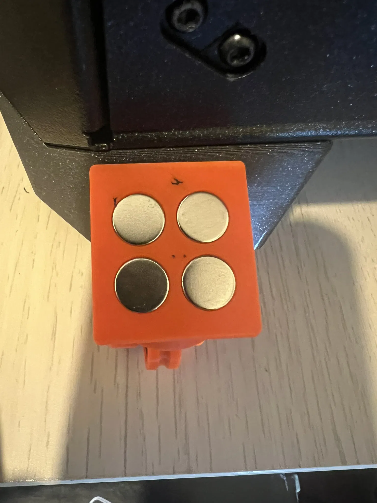 Gắn bằng 2 cái vòng bi 608 và 4 cái nam châm 10x3 mm.