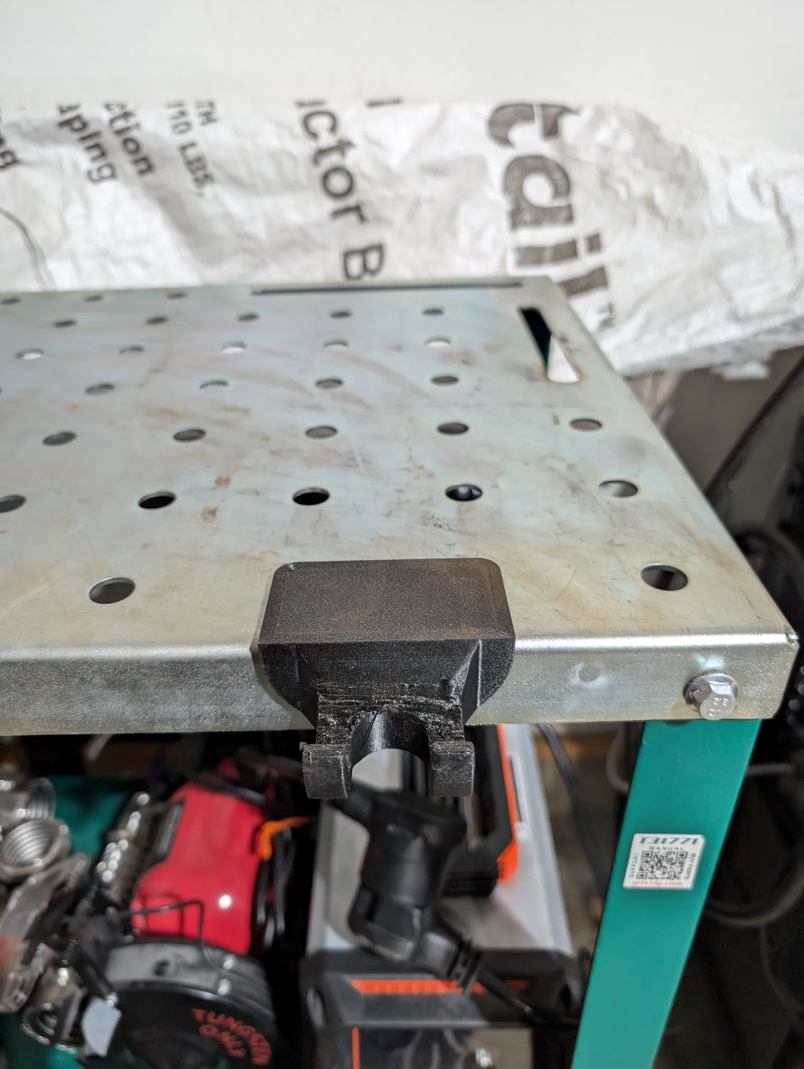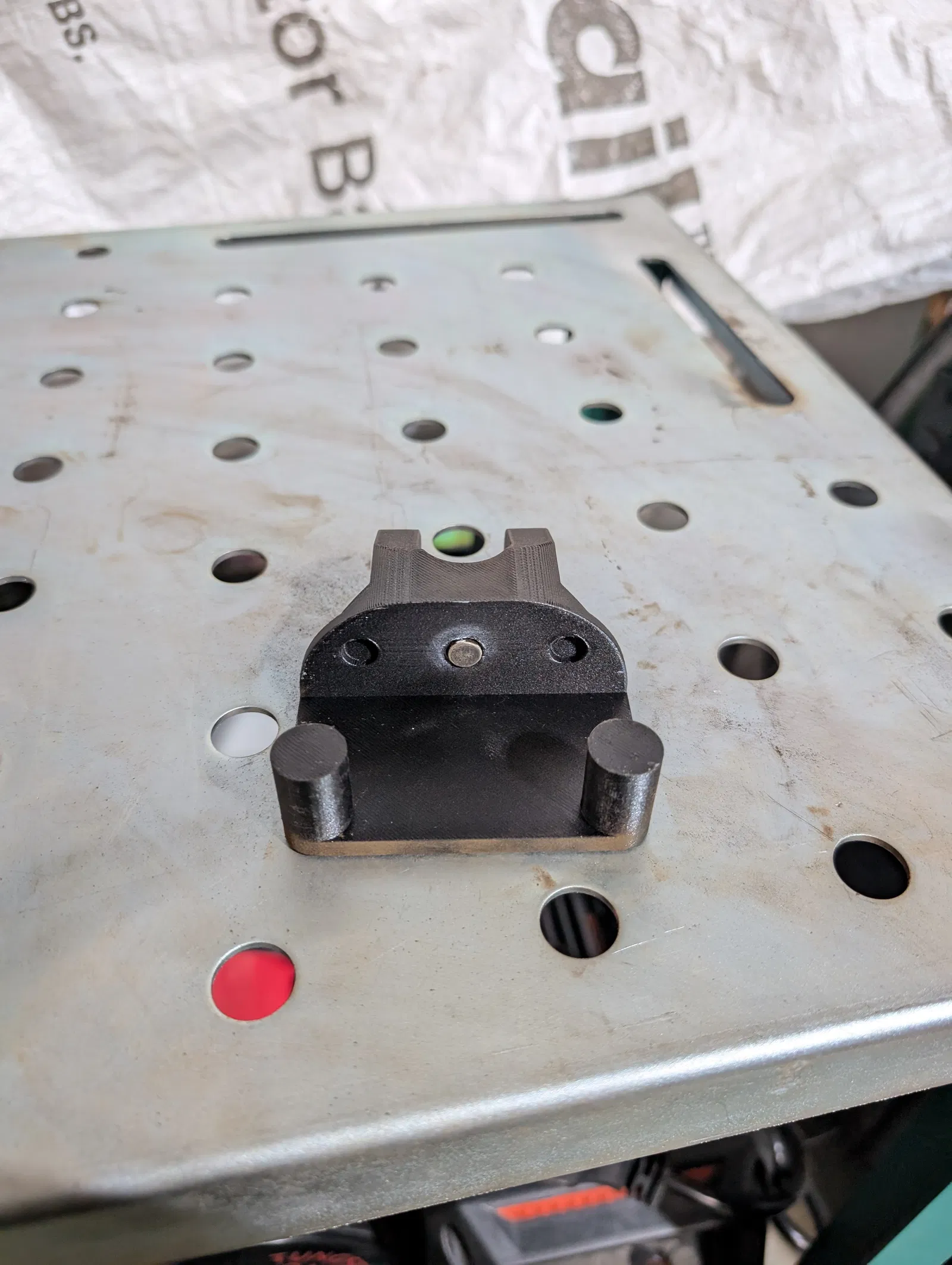 Giá đỡ TIG torch đơn giản cho bàn hàn Grizzly T31771, bắt bằng lỗ sẵn trên bàn và thêm nam châm. Có 3 lỗ cho nam châm 8x2 bám chắc hơn, chừa khoảng hở không vướng ốc góc; phù hợp in PETG-CF.