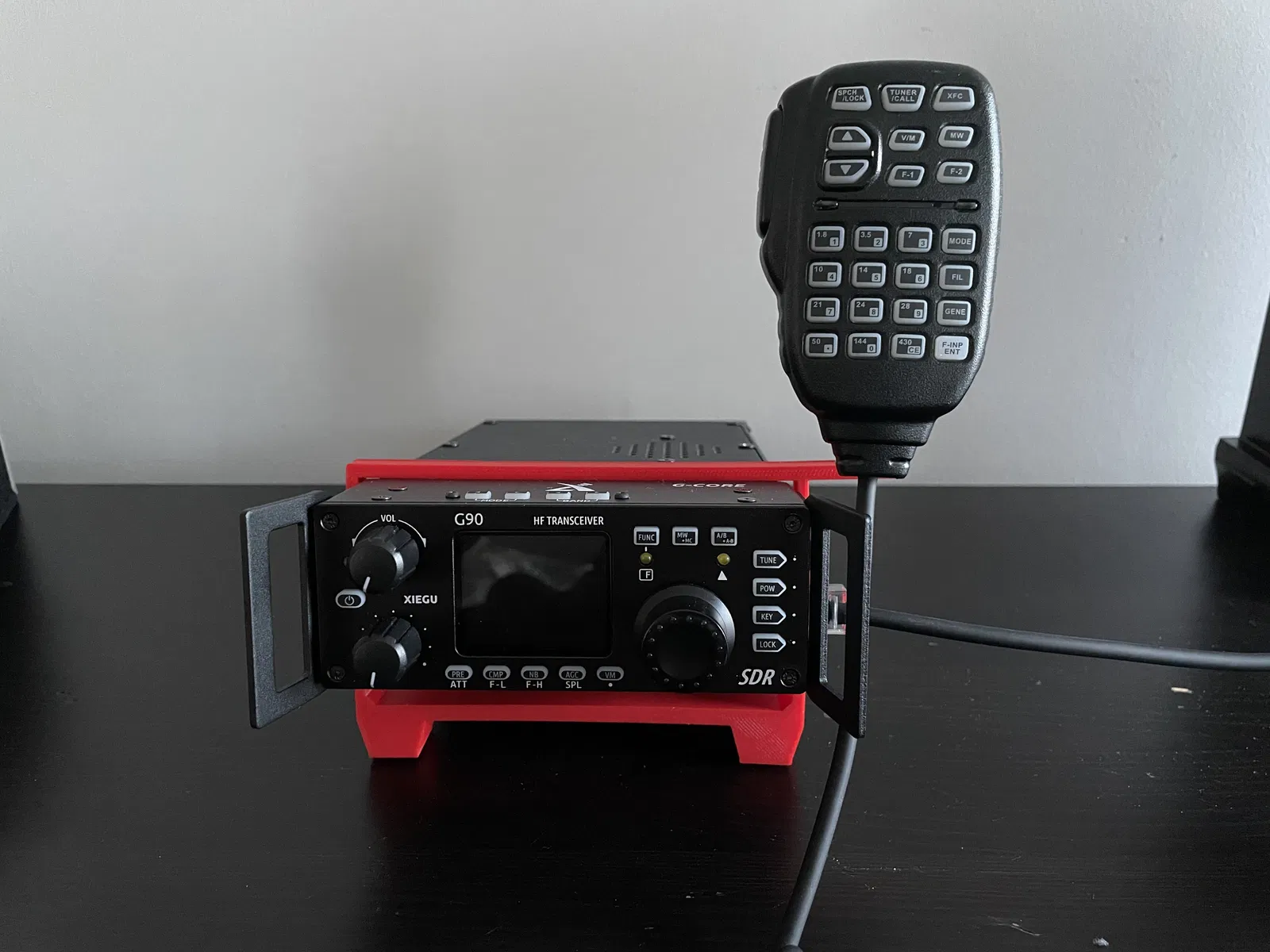 Giữ micro luôn trong tầm tay với móc treo clip-on gắn vào lá tản nhiệt của radio Xiegu G90. Dễ lắp/tháo, không cần ốc hay keo. Phù hợp bản G90 có 7 lá tản nhiệt mỗi bên.