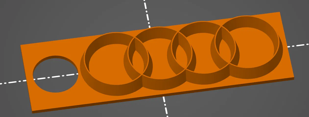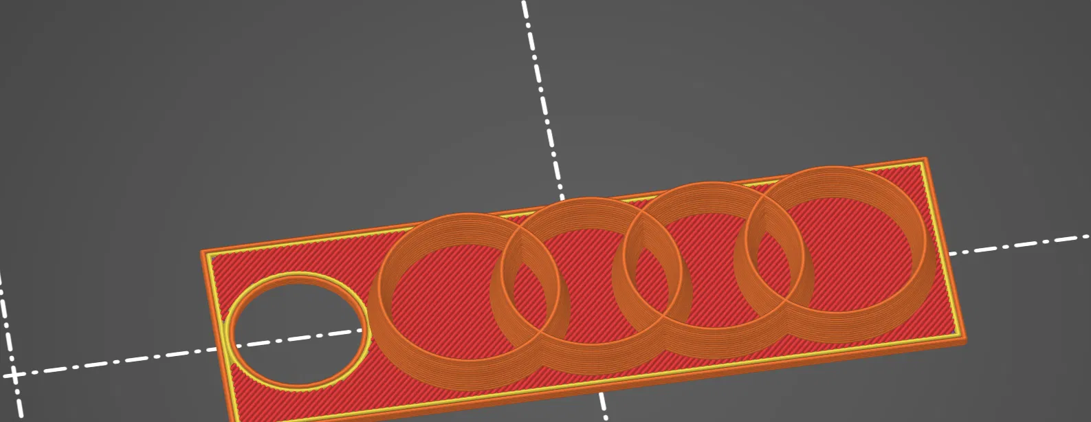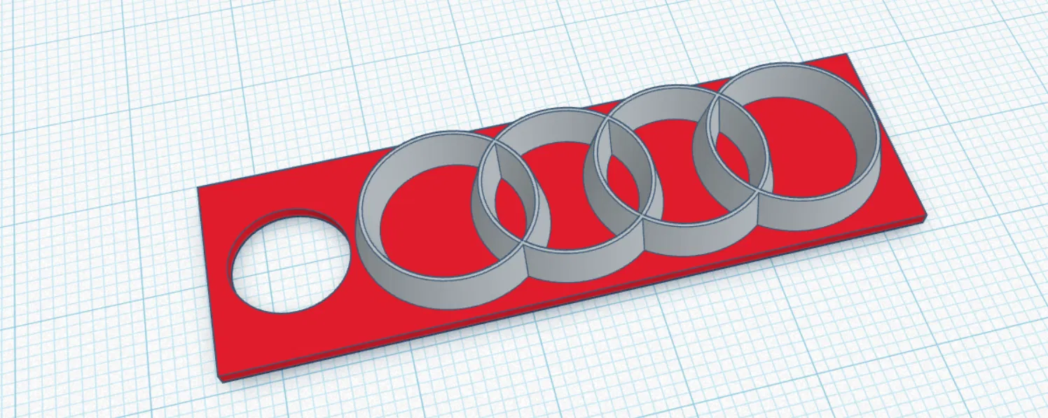 Mẫu móc khóa Audi với logo nổi bật. Nên in phần nền và phần logo bằng hai màu khác nhau để tạo độ tương phản, nhìn rõ chi tiết và đẹp hơn khi gắn vào chìa khóa hoặc balo.