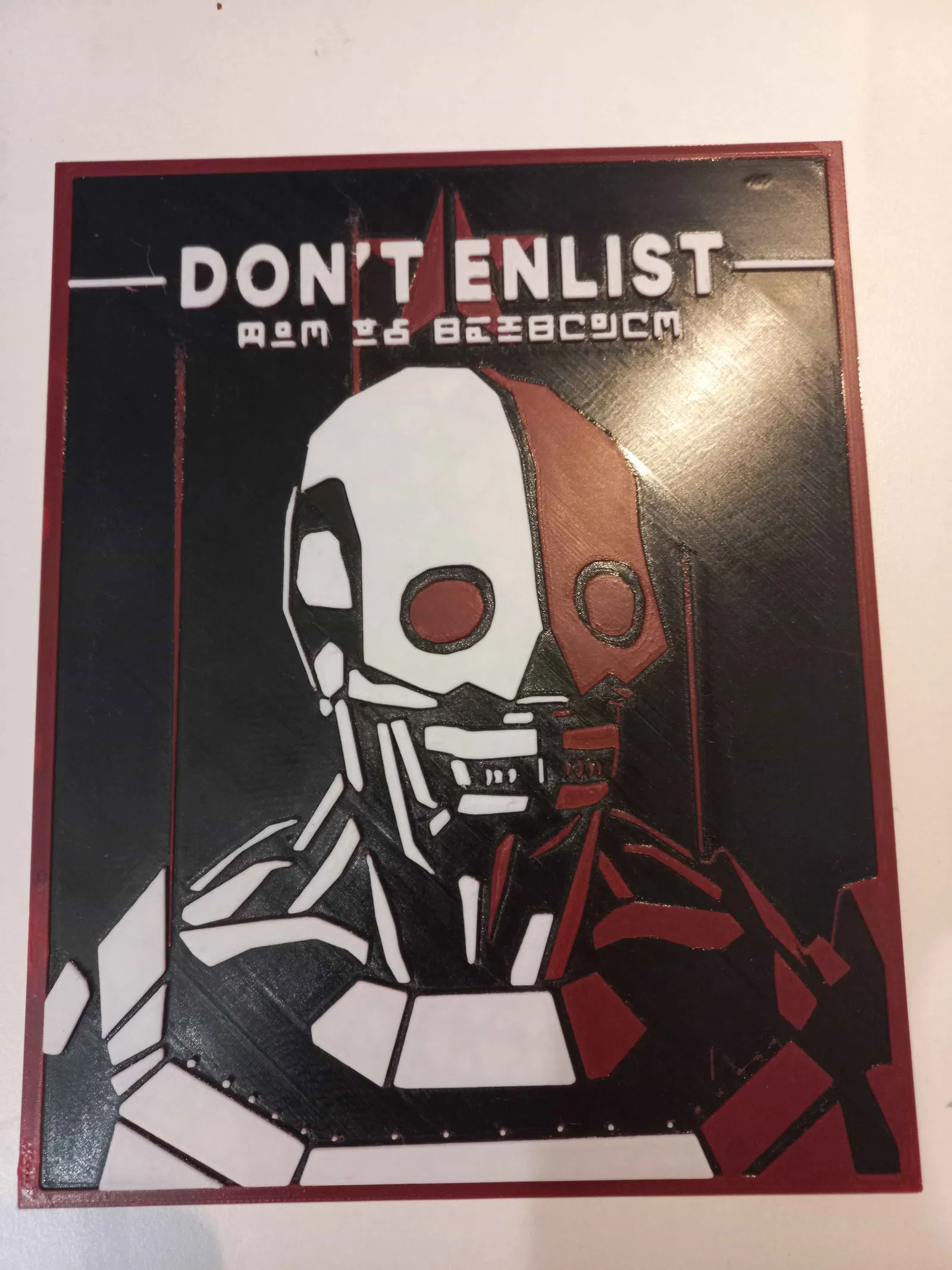 Poster tuyên truyền Automaton trong Helldivers 2, thiết kế để in 3D bằng Hueforge. Phù hợp làm đồ trưng bày/treo tường cho fan, tạo hiệu ứng màu theo lớp in và dễ xuất file để in.