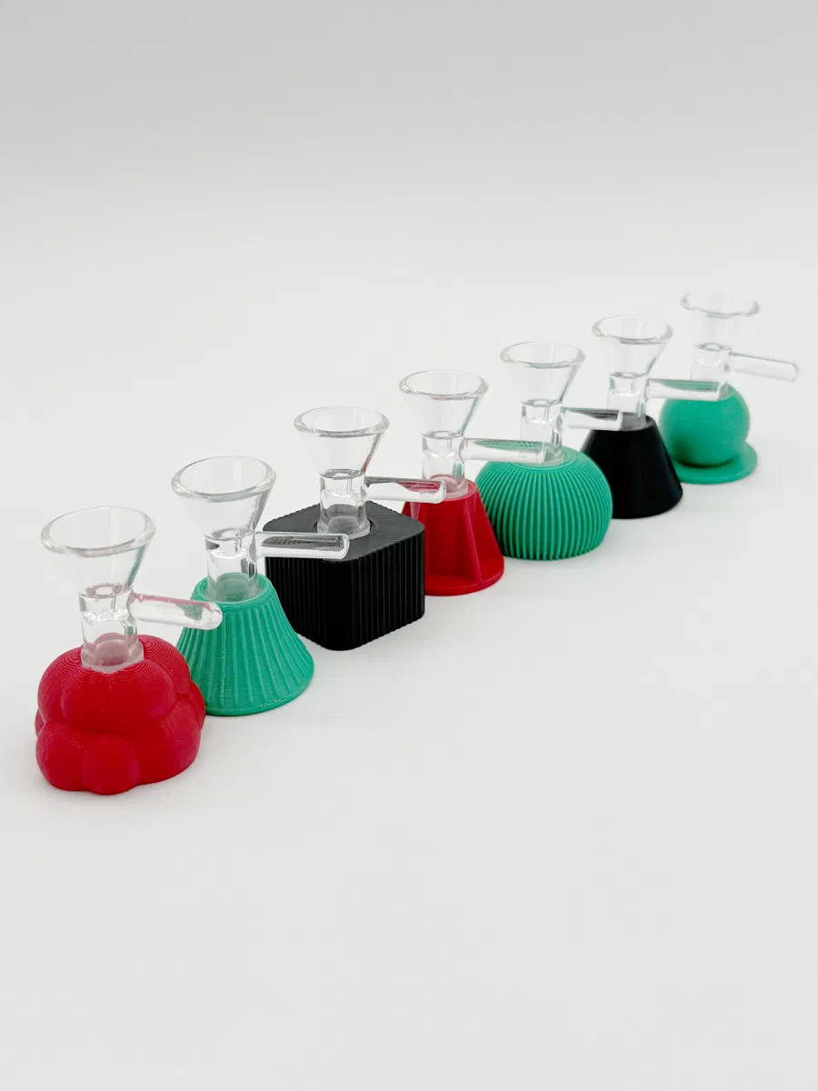 Kệ/đế “đậu” dành riêng cho 1 bowl tiêu chuẩn 14mm, có tới 7 biến thể để chọn. Chỉ dùng cho thảo mộc hợp pháp theo quy định địa phương. Tác giả cho phép in và bán thương mại mẫu này.