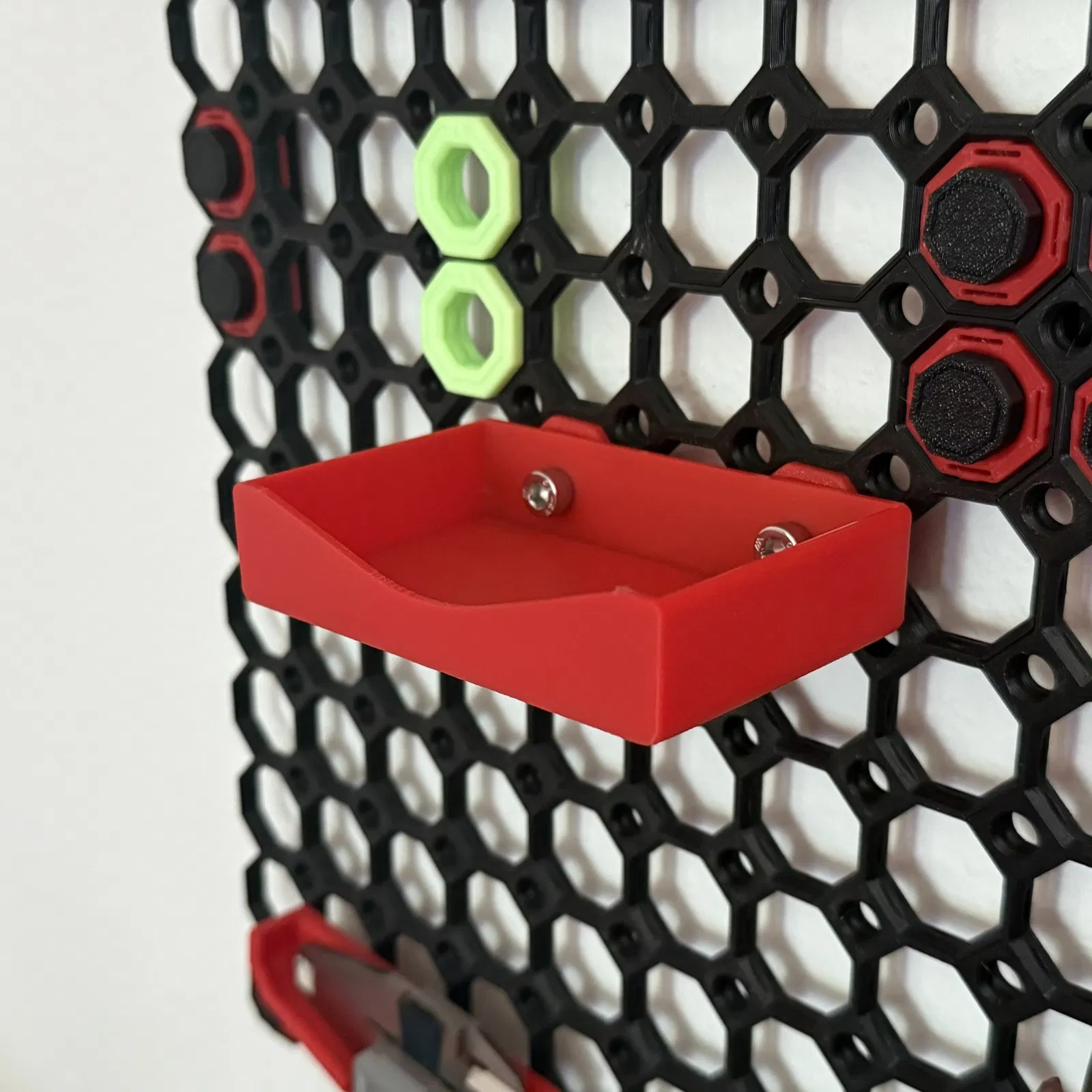 Giá treo thước cuộn gắn lên Multiboard, giúp cất thước gọn gàng và dễ lấy khi cần. Cần 2 vít M5 x 12/16, 2 M5 heat inserts và 2 Multiboard Heat Insert Snaps M5.