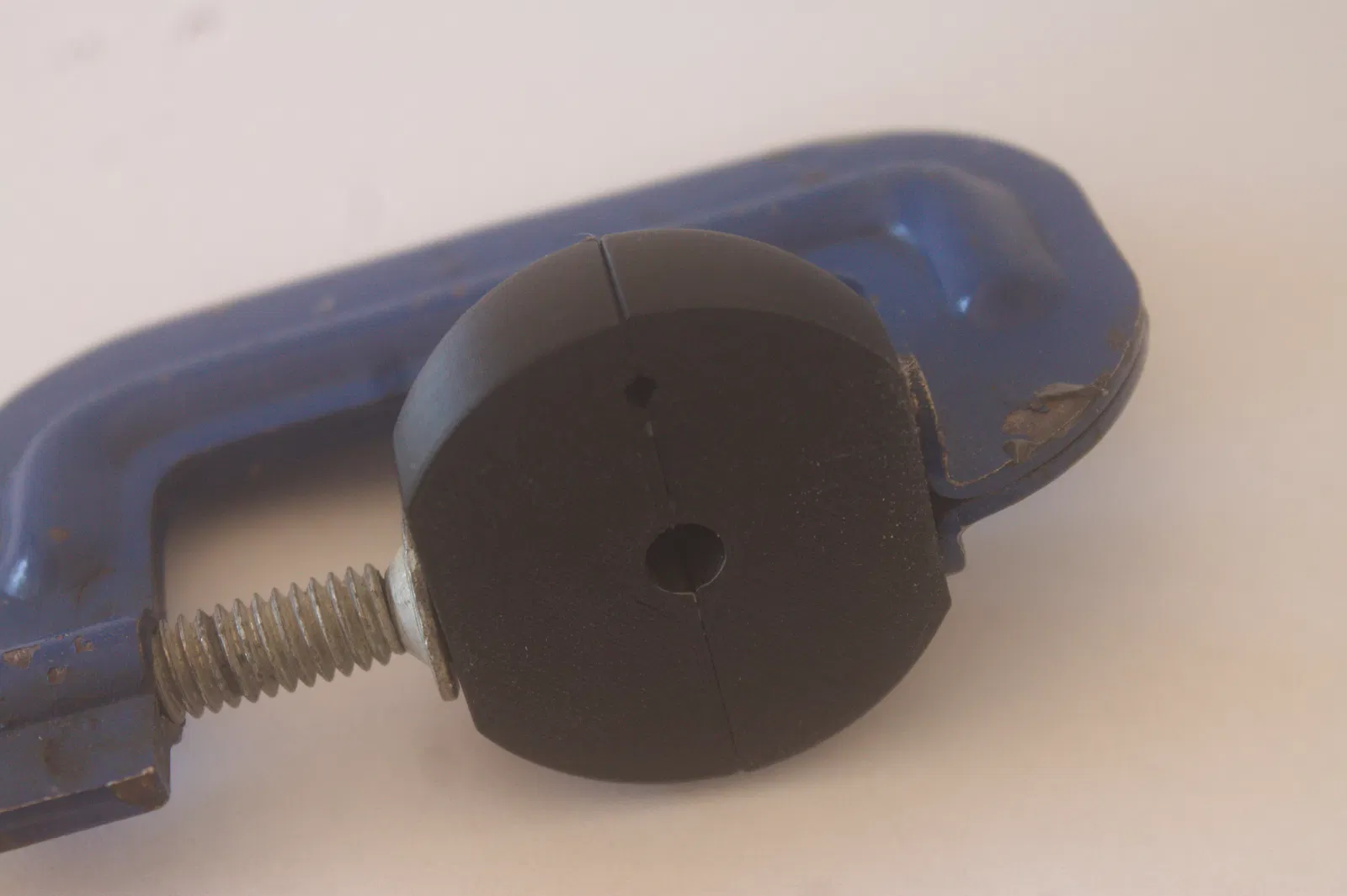 Đầu tiên, kẹp chặt hai nửa khuôn lại bằng ê-tô (vise), kẹp (clamp), hoặc thậm chí dán băng keo cũng được — miễn sao hai nửa dính sát và chắc chắn với nhau.