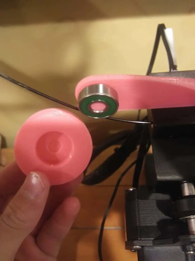 Cái bánh xe lớn giúp dây tóc dễ dàng đổi hướng từ dọc sang ngang, hoặc vào cảm biến dây tóc. Khi gắn cái này lên Elegoo Neptune 2 sẽ cần ốc dài hơn ốc có sẵn. (Mình phải dùng ốc M3 x 20mm để gắn). Hướng dẫn này giúp dây tóc đi thẳng vào cảm biến dây tóc. Bánh xe này không cần support. Cần vòng bi 608 để nó hoạt động. Mình cũng có phiên bản (profile thấp) hoặc nhỏ hơn, không quá to và cồng kềnh.