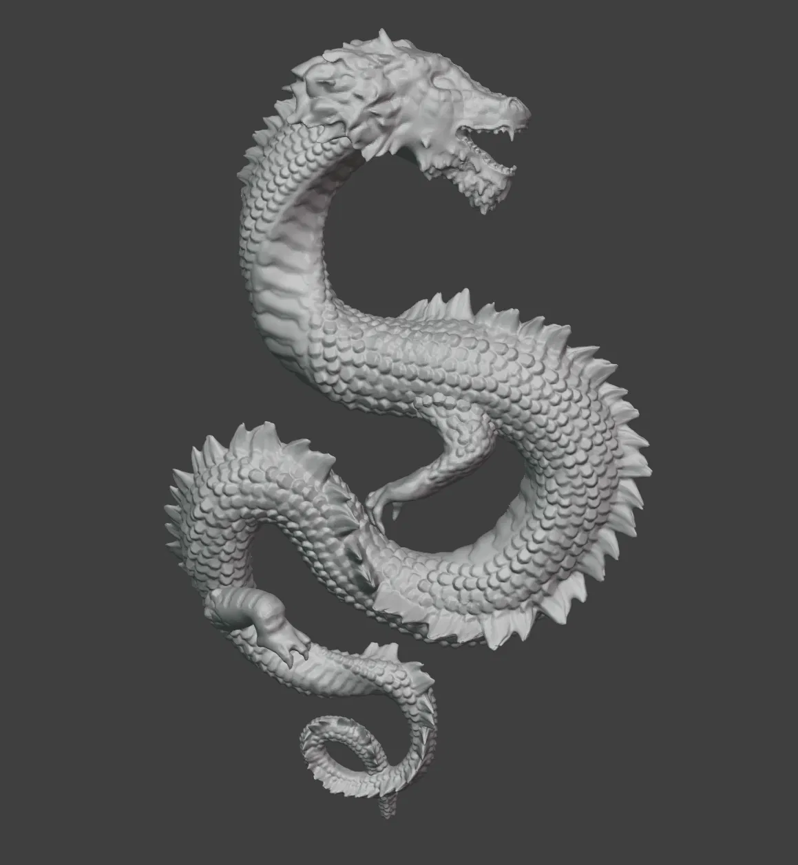 Mẫu Rồng Trung Hoa (treo tường) là món trang trí gắn lên tường, có bề mặt phẳng giúp phần thân rồng “lún” nhẹ vào tường để nhìn liền mạch. Khuyến nghị in layer height 0.2mm với nozzle 0.4mm.